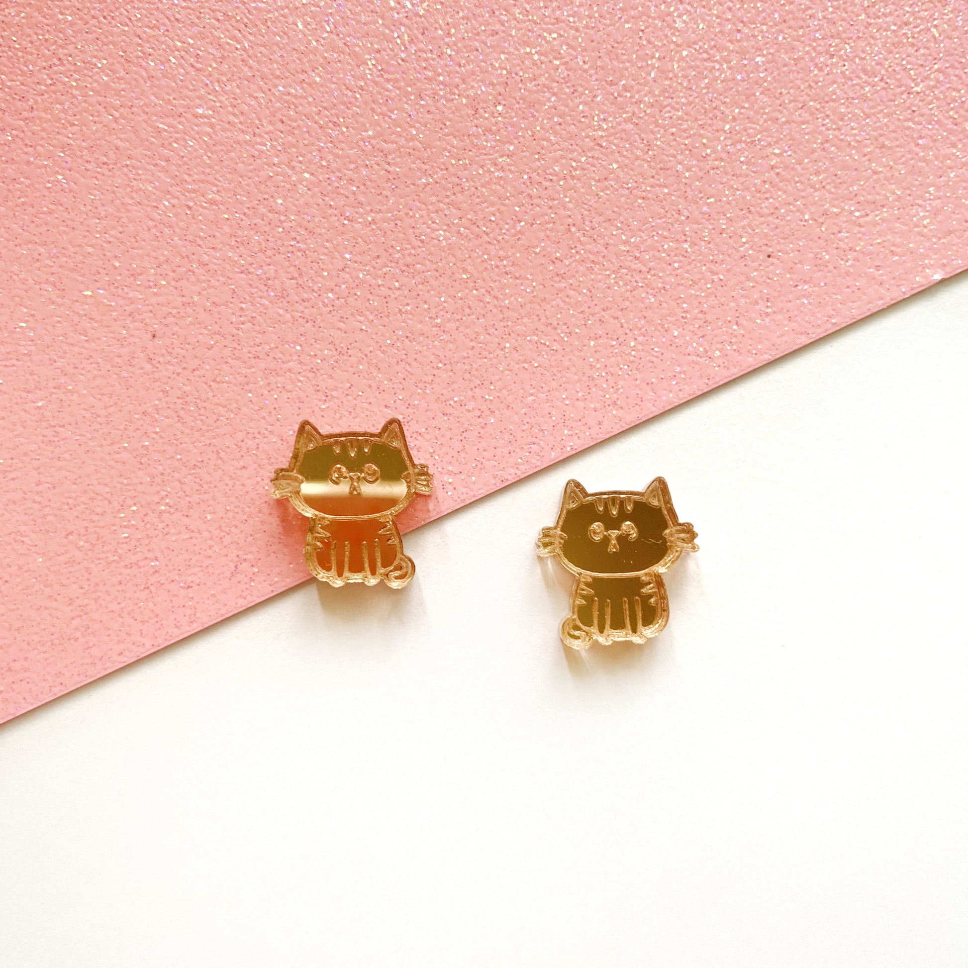 Pair of Cat Blanks with detailed engraving for making stud earrings.
