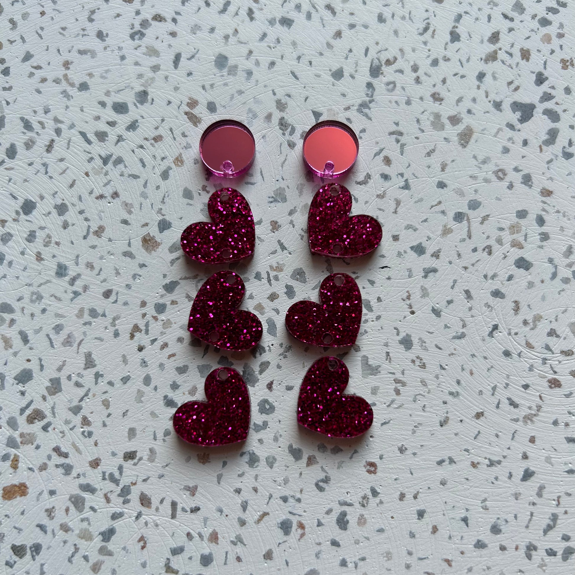 Pictured in Deep Rose GlitterAcrylic. Second picture shows them below Pink Mirror 12mm circle studs with hole available separately.