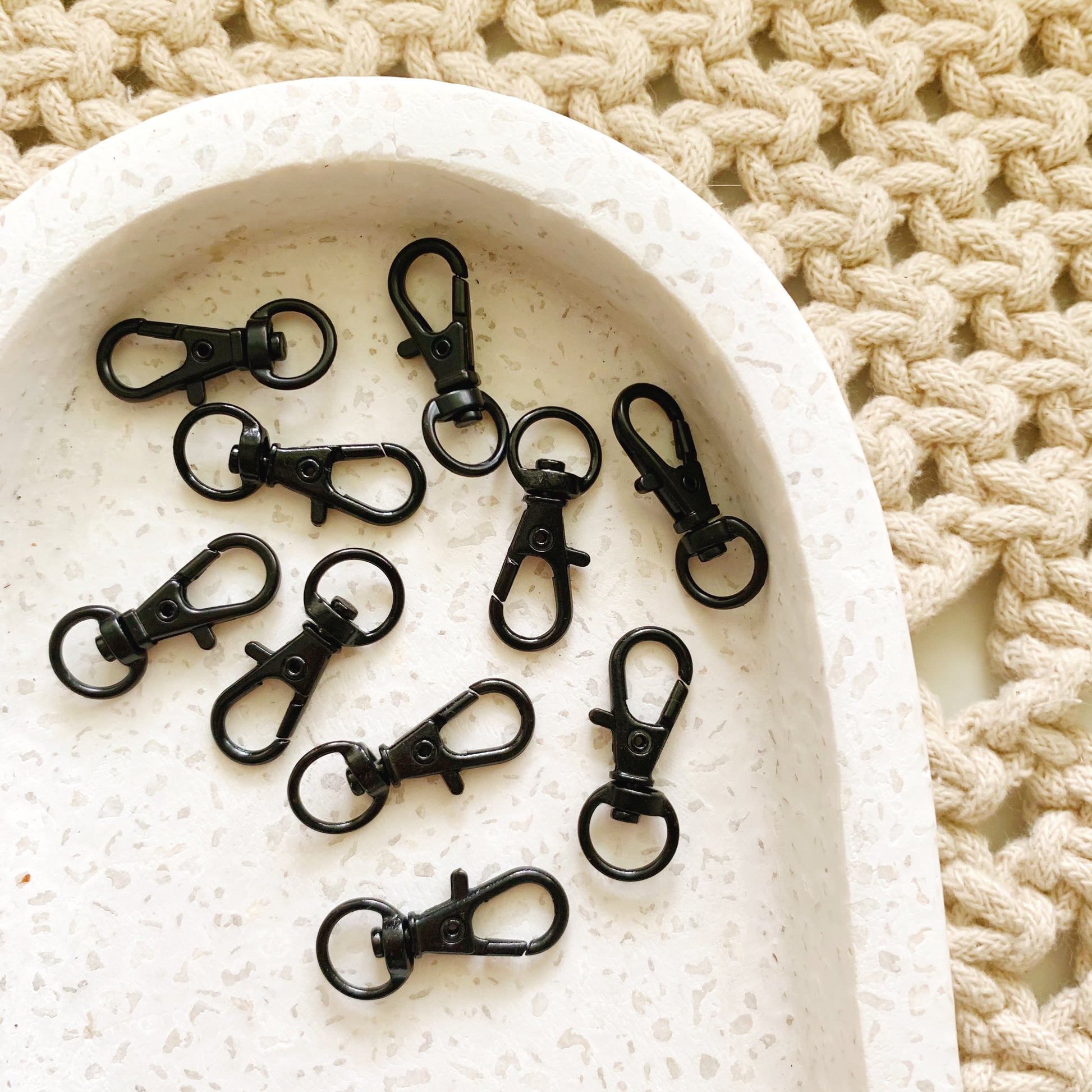Pack of 20 clasps with keyrings in Black.