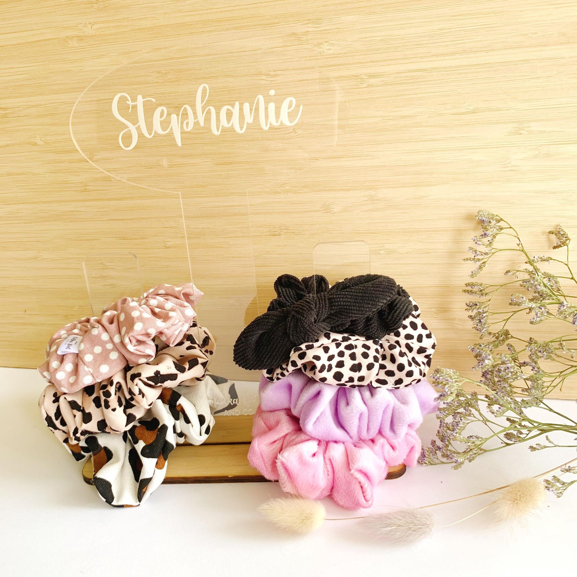 Each scrunchie stand comes with a bamboo flat base as pictured on the last photo