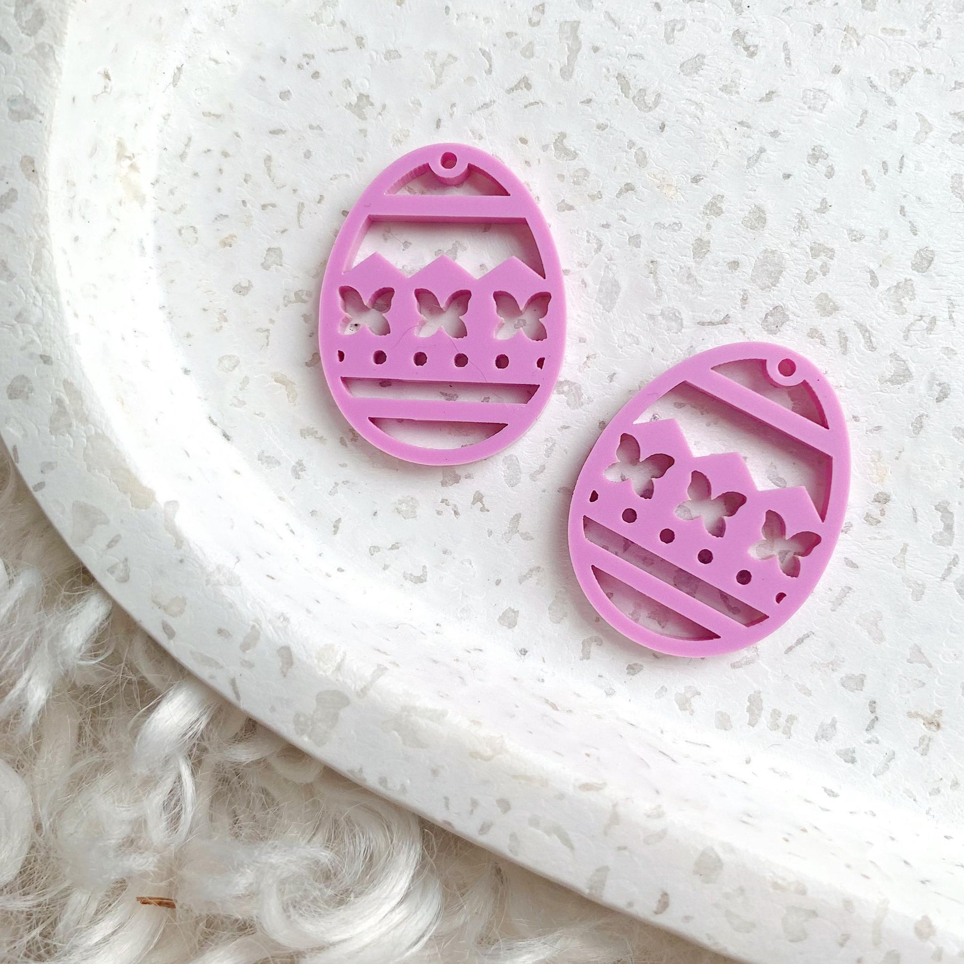 Pair of Easter Egg Dangles with intricate butterfly cut out details measuring 35mm high