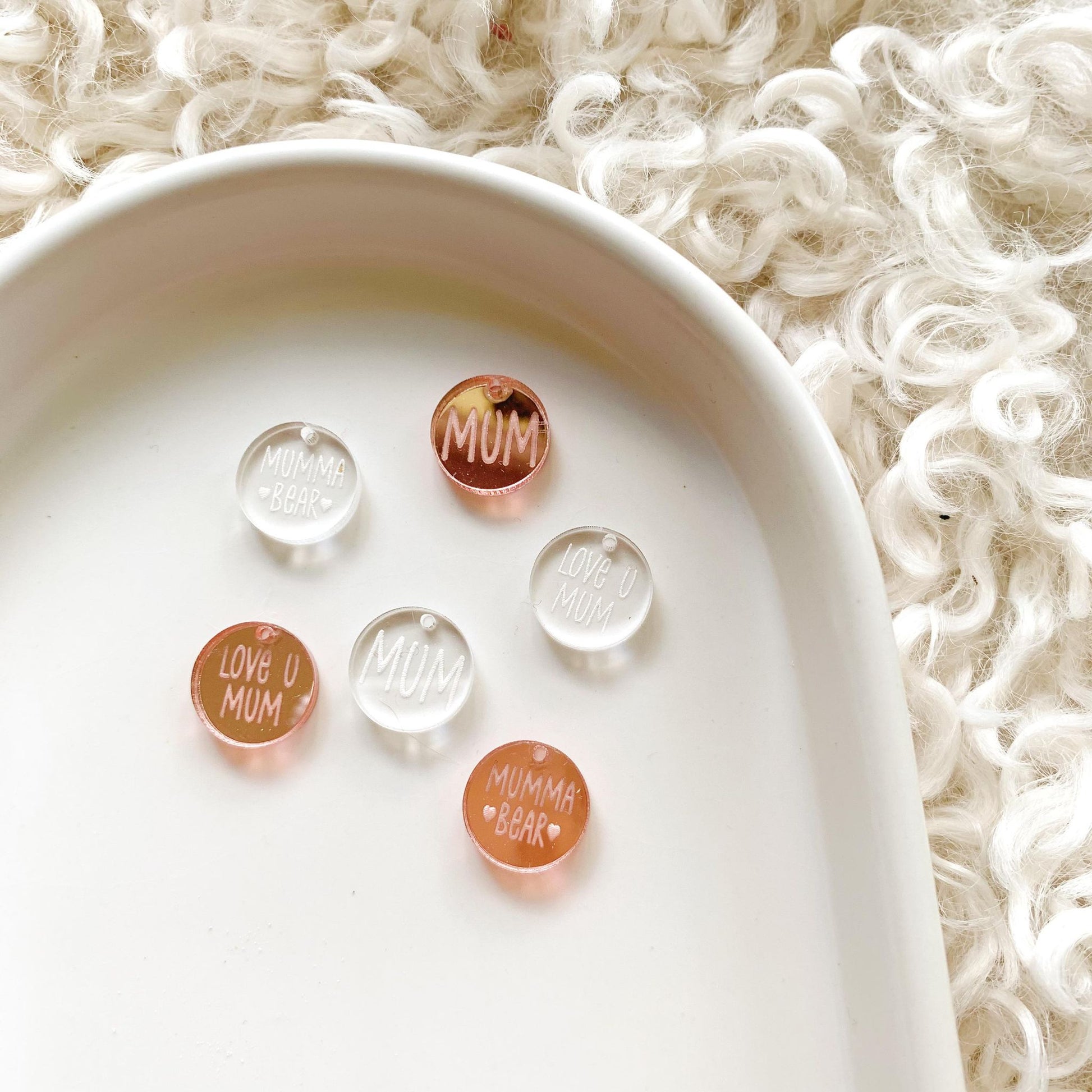 Charms for Mum 15mm Engraved Clear Acrylic or Mirror Circle Tags