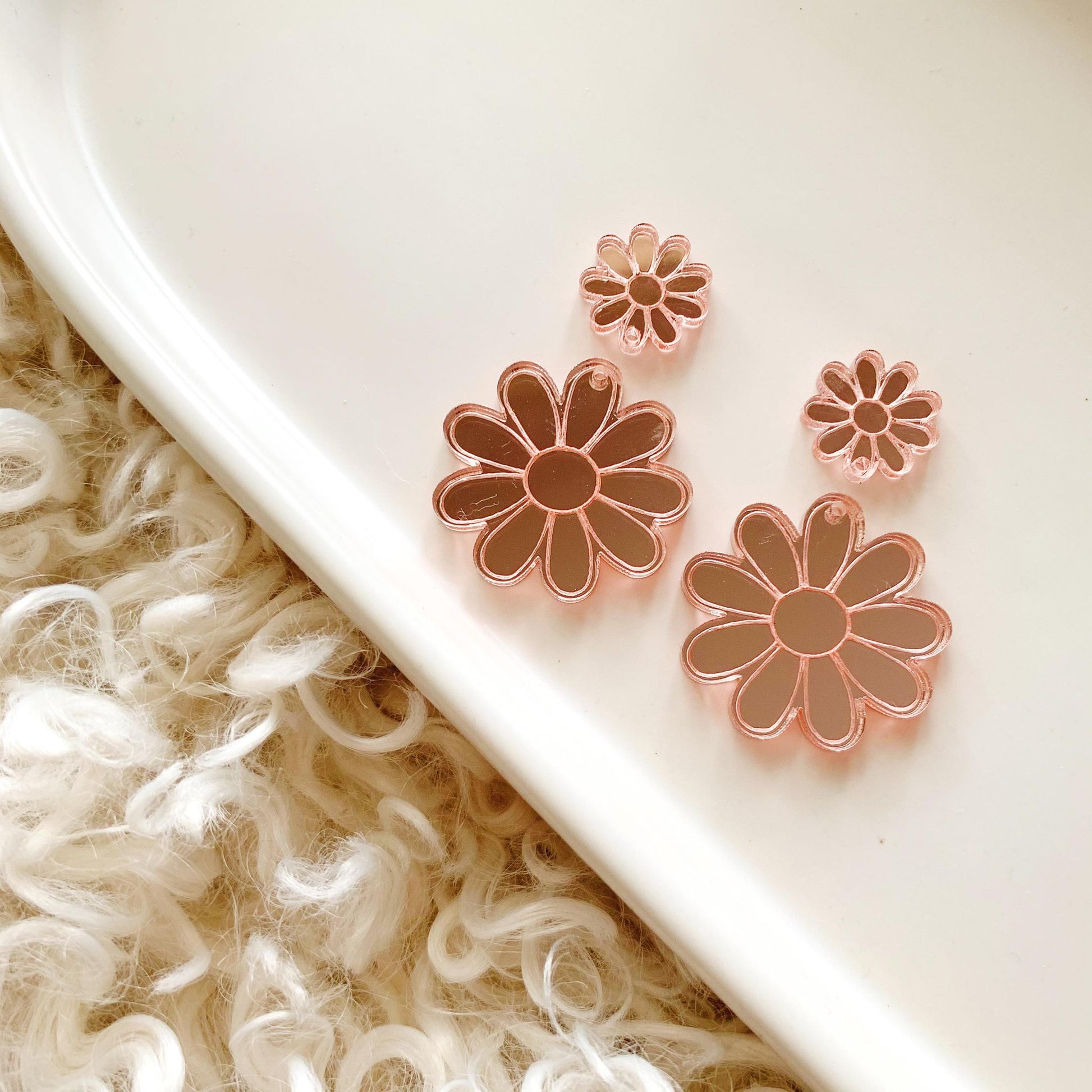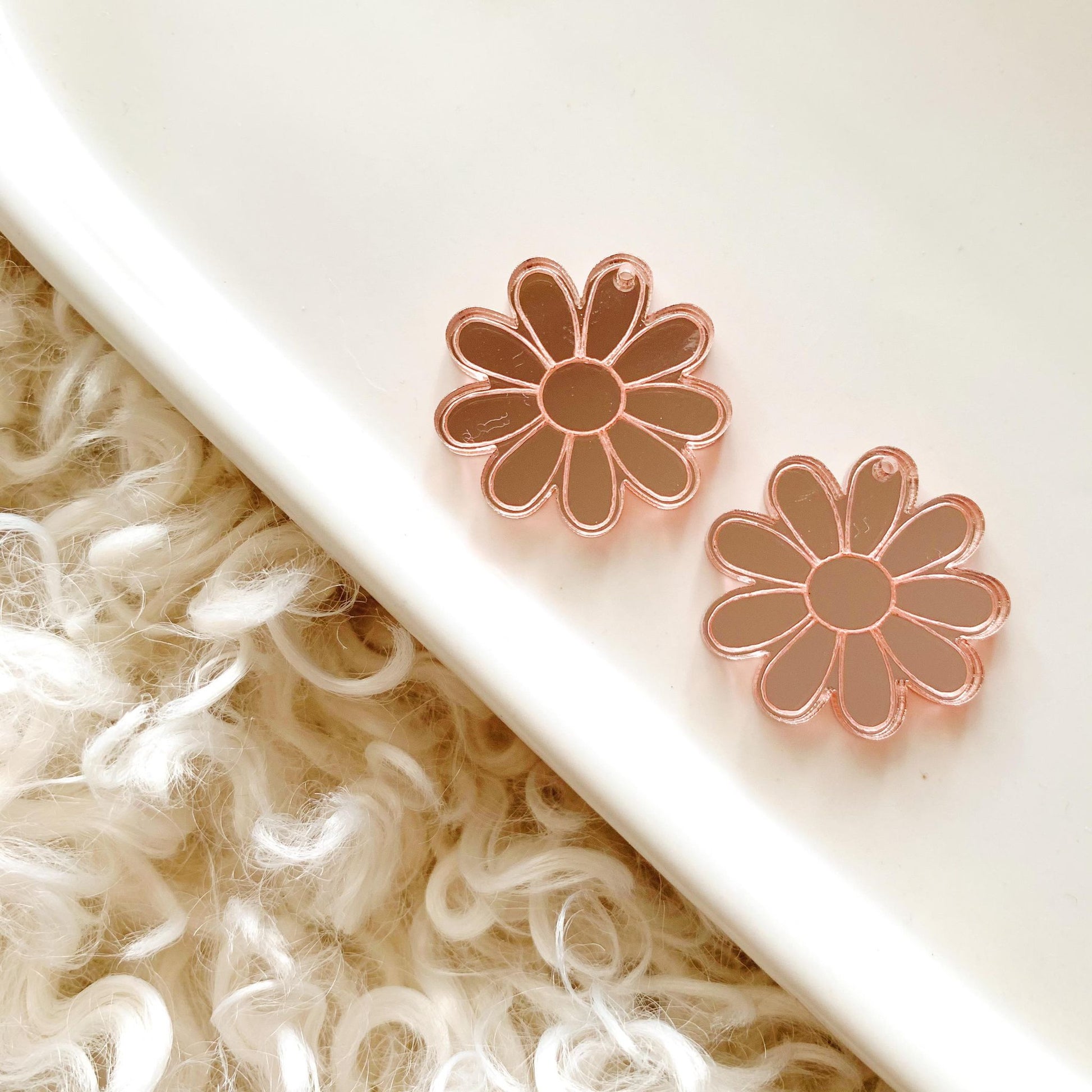Pair of Engraved Daisy Dangle Blanks with holes measuring 30mm in diameter available in a range of Mirror Acrylics