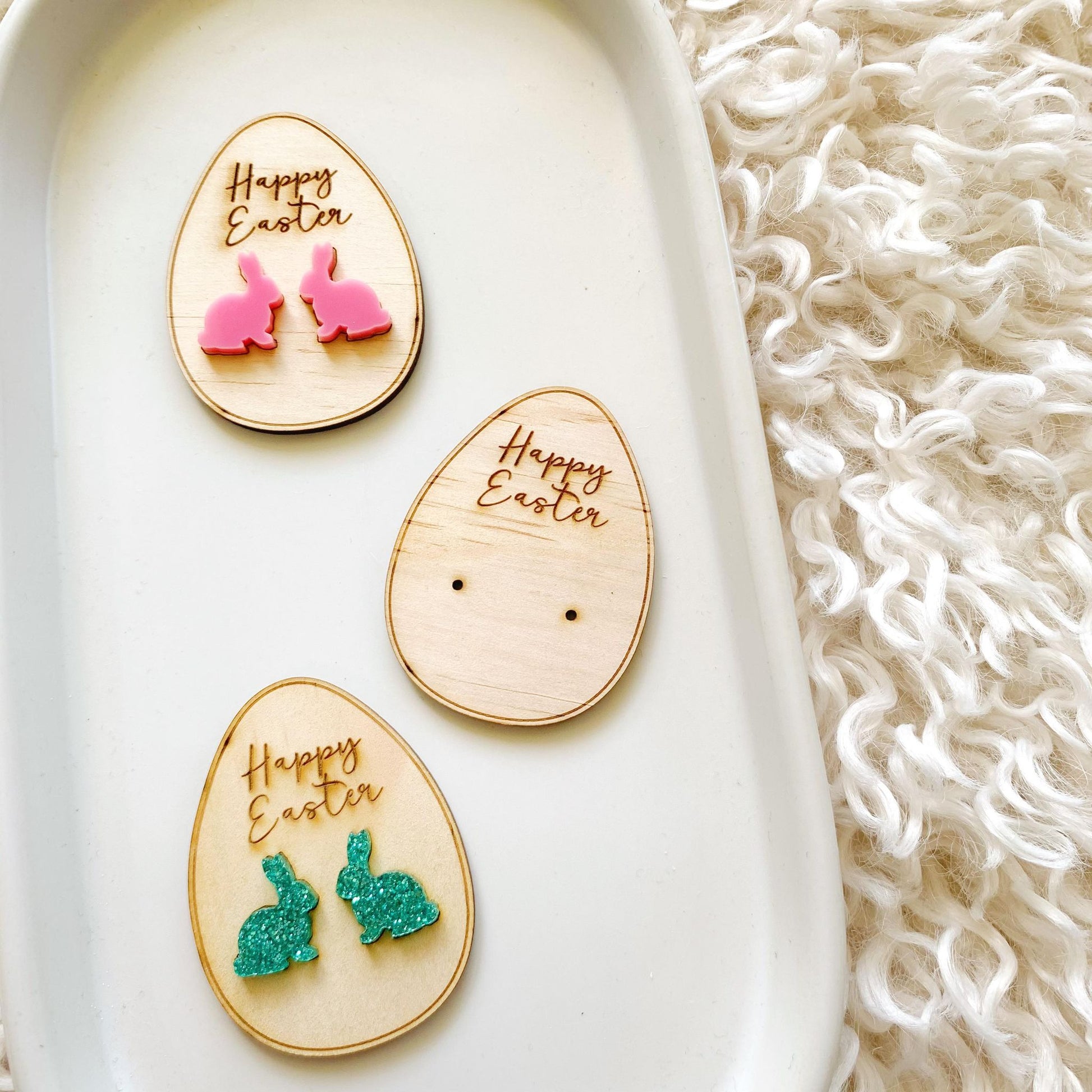 Easter Egg Plywood Earring Display Cards to showcase your earrings. Engraved with Happy Easter these help you to provide a great gift packaging option to your customers.