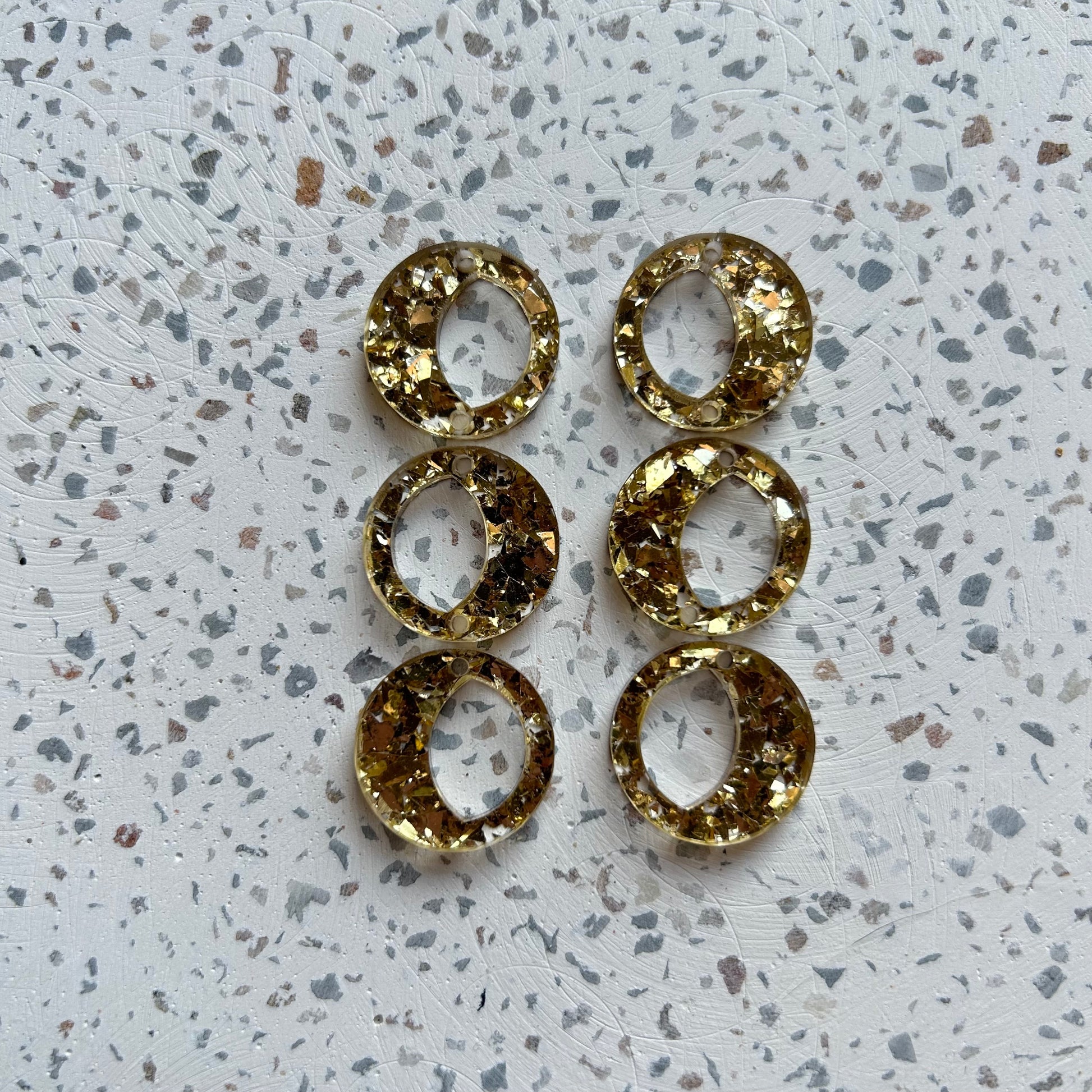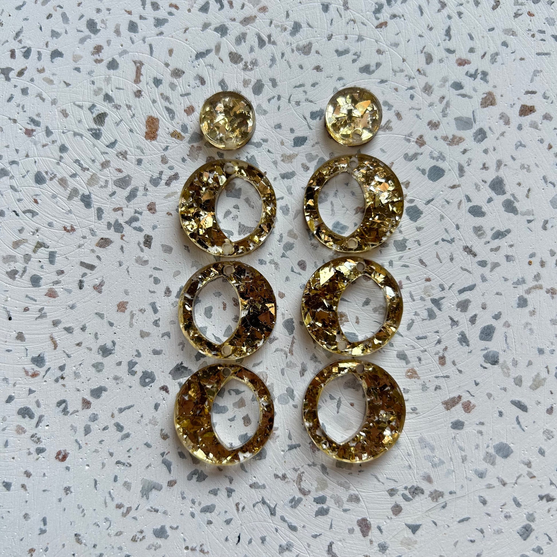 Pictured in Chunky Gold Glitter Acrylic. Second picture shows them below Chunky Gold Glitter 12mm circle studs with hole available separately.