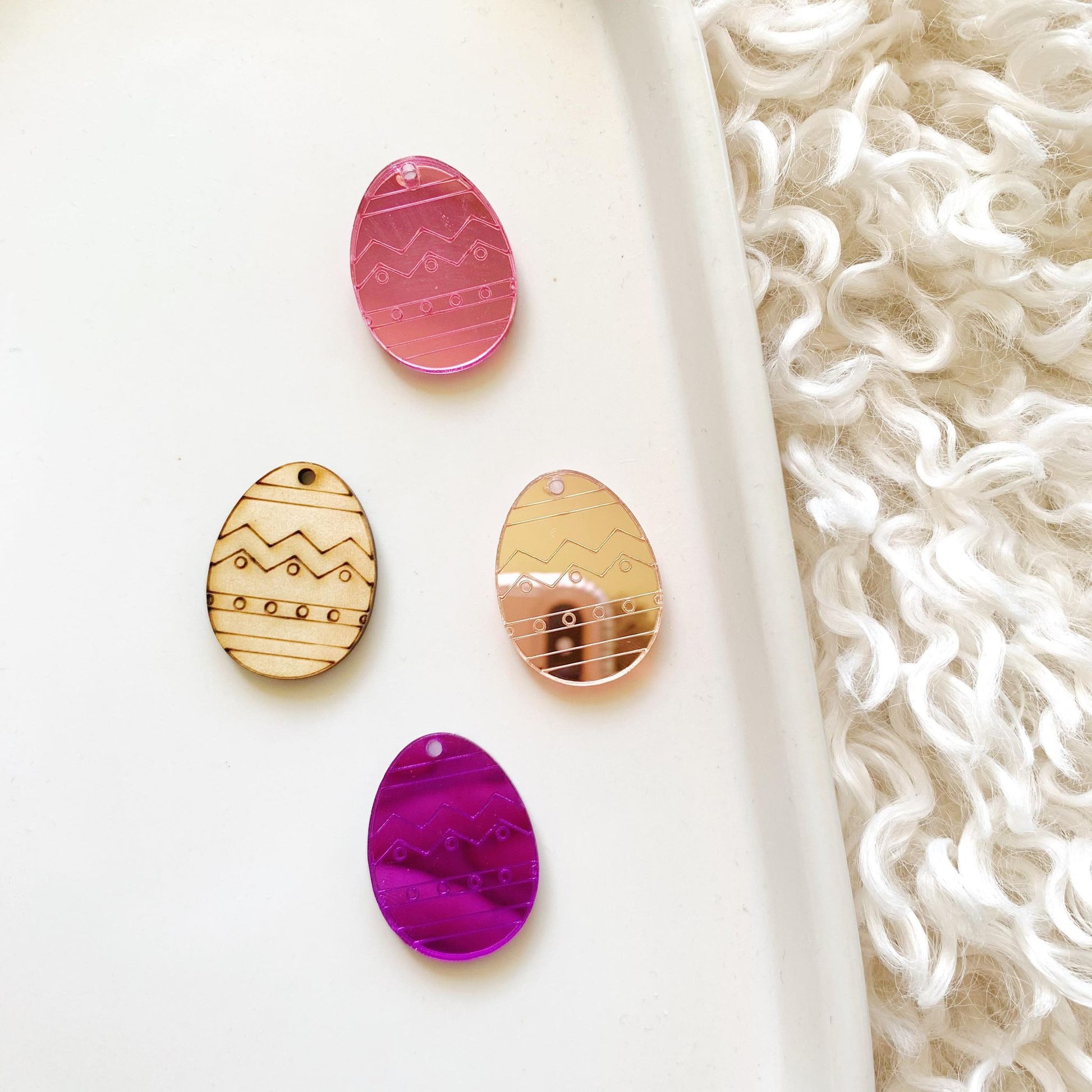 Pair of 30mm Engraved Mirror Easter Egg Dangle Blanks with Zig Zag Pattern with a hole at the top to attach to stud.
