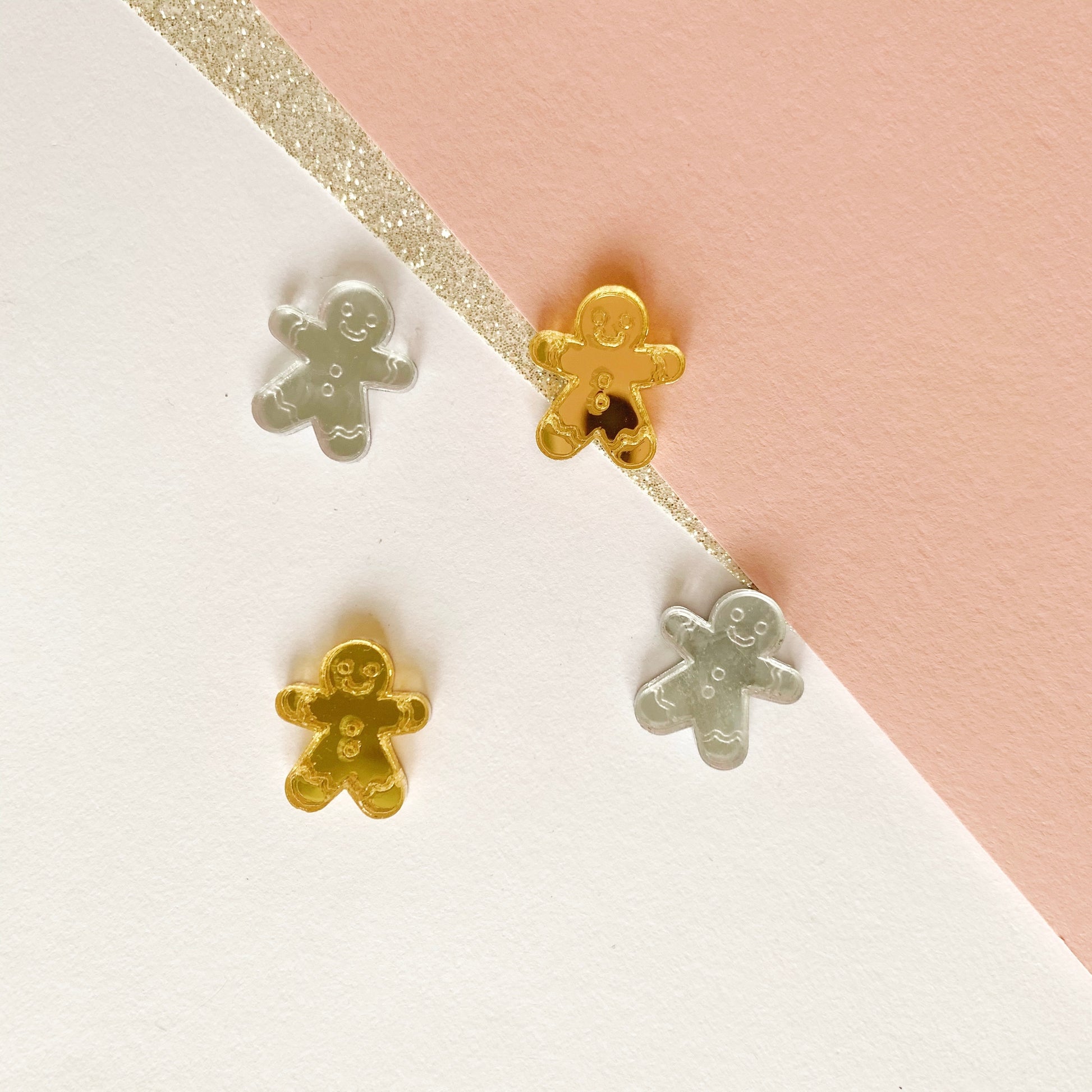 Pair of Gingerbread Man Blanks with detailed engraving for making stud earrings.