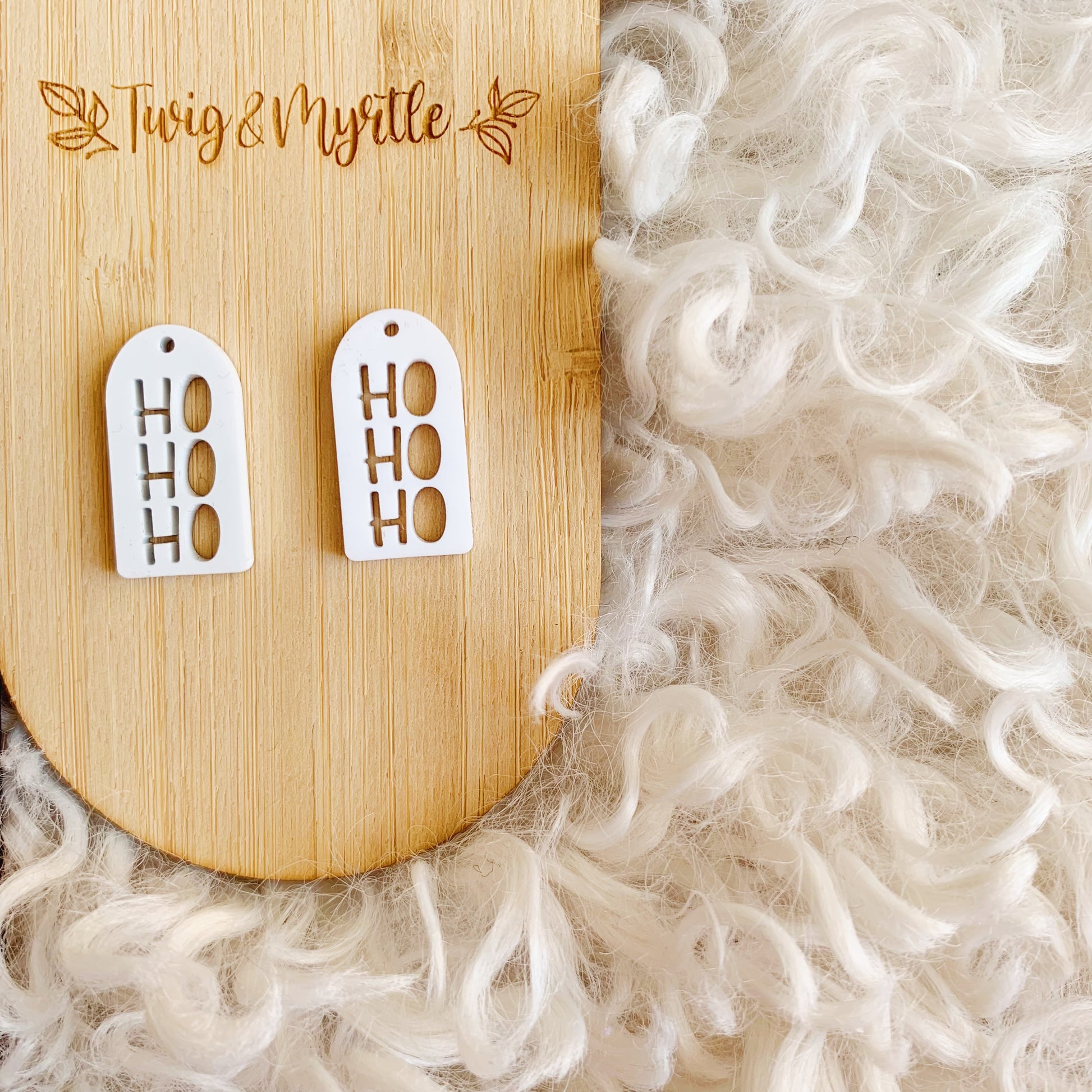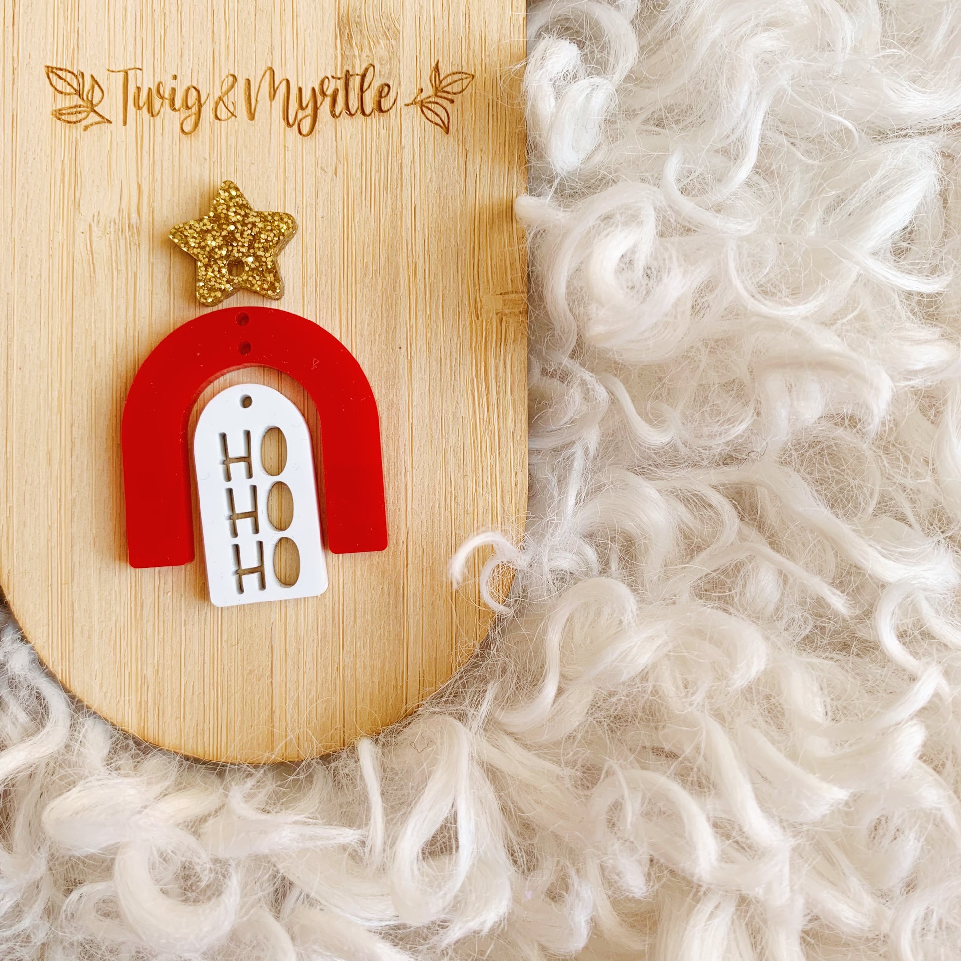 Pair of Mini Arch Dangles measuring 13.5mm x 26mm featuring a cut out HO HO HO