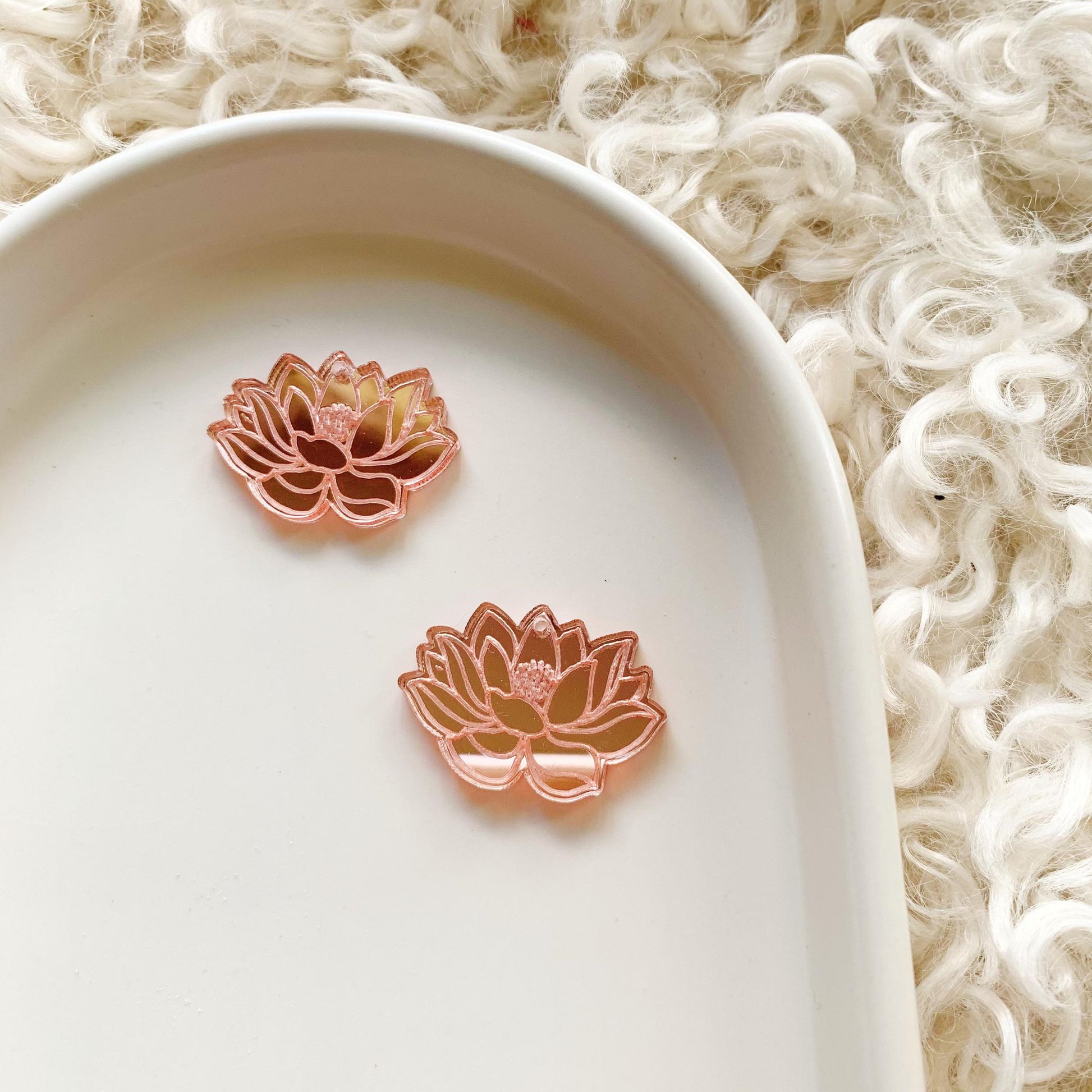 Pair of Lotus Engraved Mirror Dangle Blanks approximately 32 x 22mm