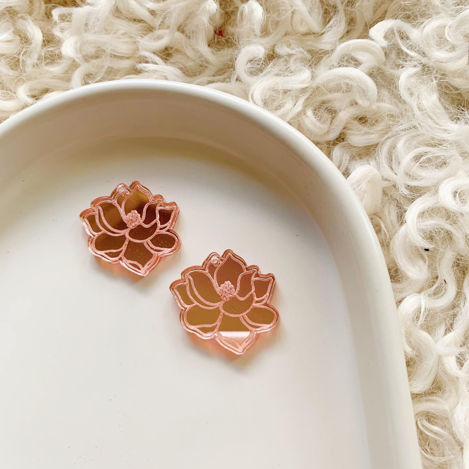 Pair of Magnolia Engraved Mirror Dangle Blanks approximately 27 x 26mm