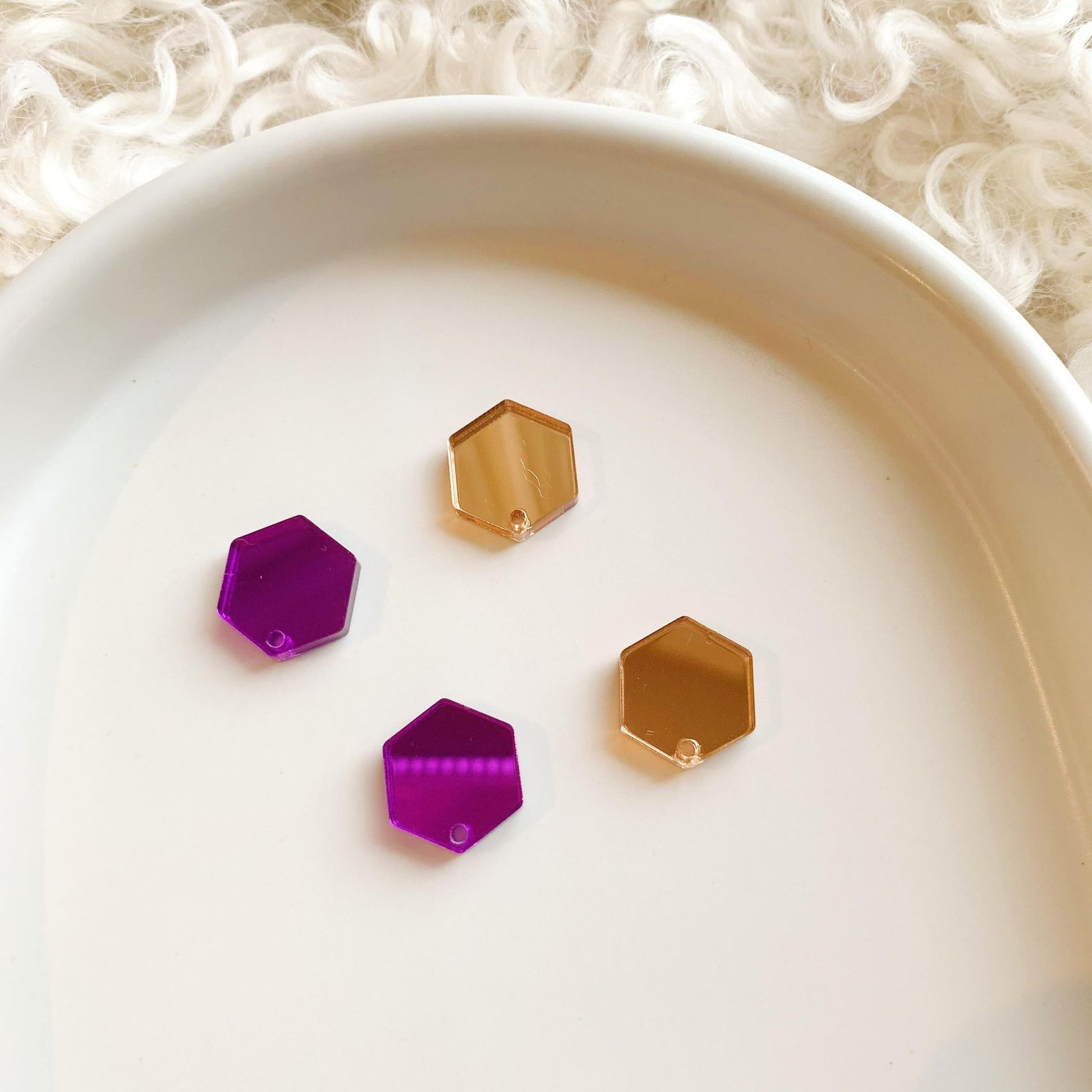 Pair of Hexagon earring stud blanks with holes to attach dangles measuring 13mm x 14mm.