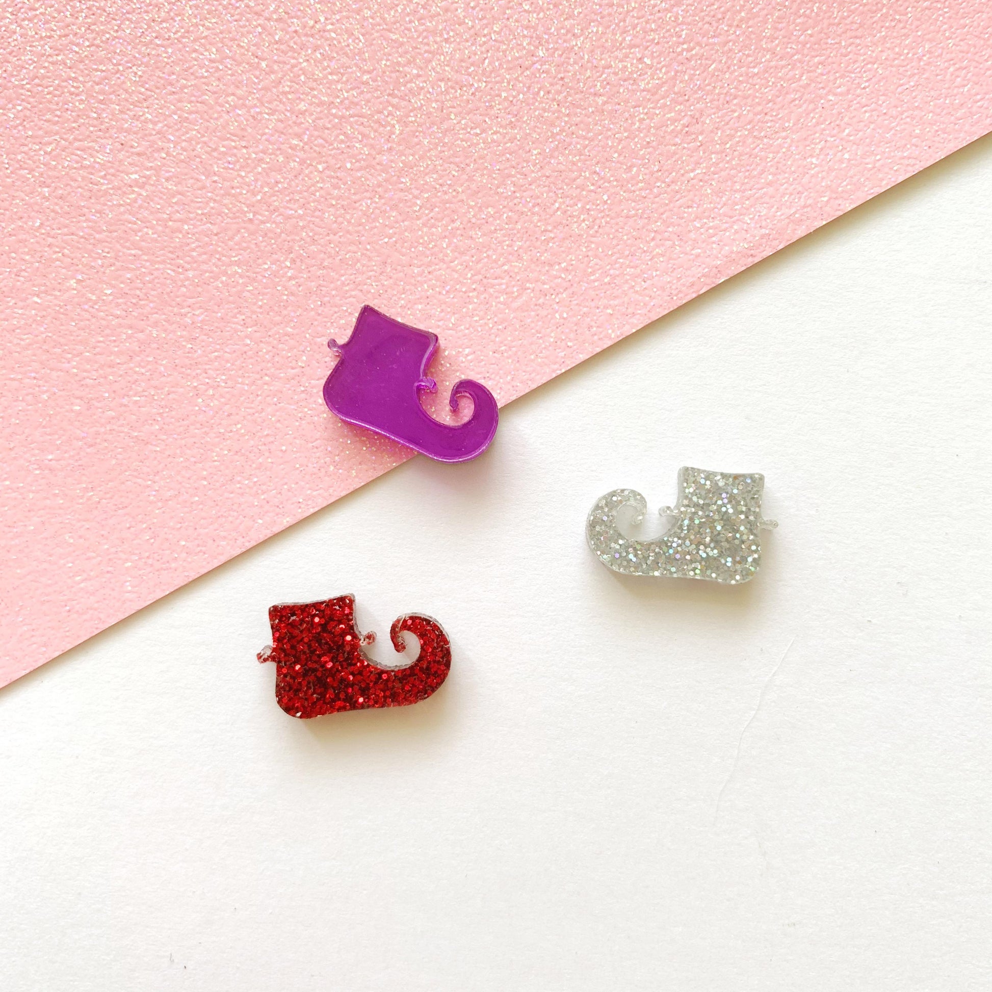 Pair of Elf Shoe Stud Blanks measuring approx 20mmx10mm. This pair of earrings are mirrored with one shoe pointing to the left and the other to the right