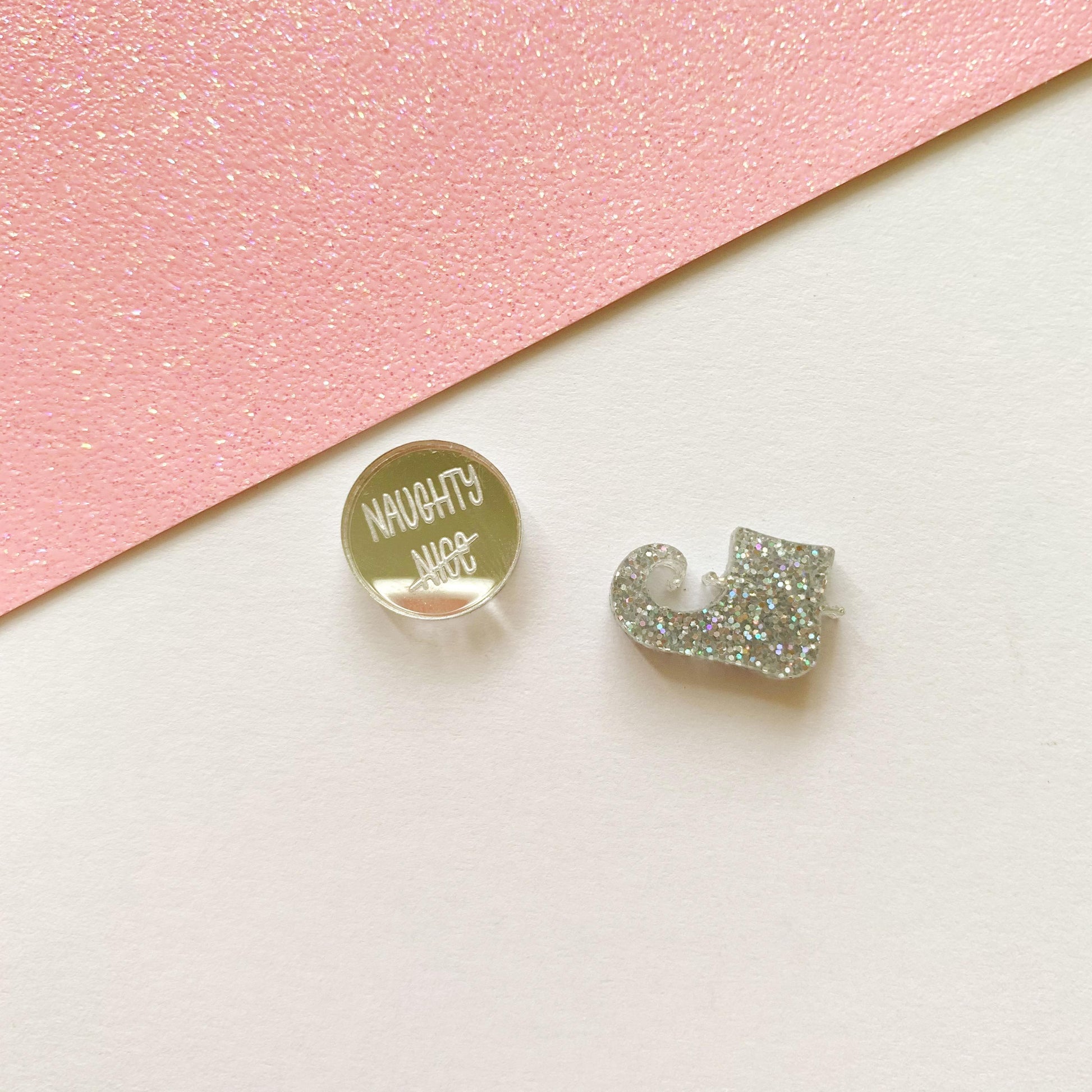 These can be mixed and matched well with our other Christmas earring blanks to make odd sets of earrings. See photos paired with our HoHoHo, Believe and Naughty or Nice Blanks as an example