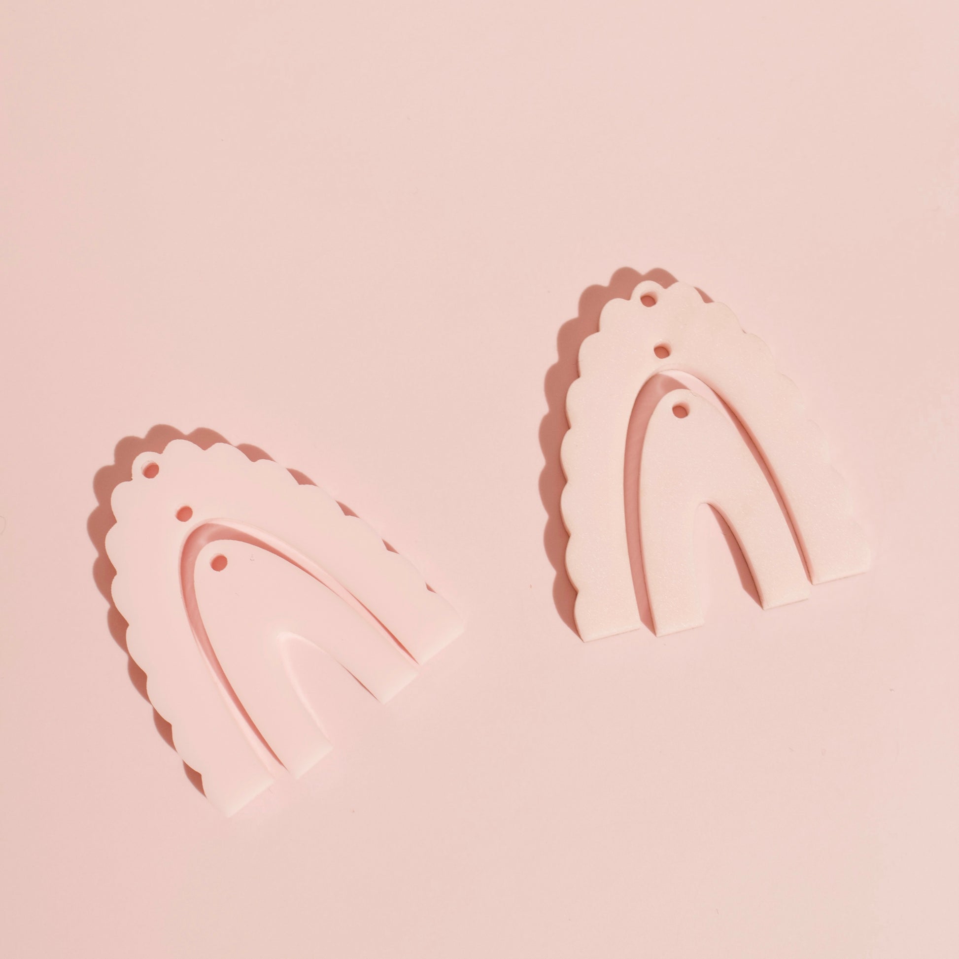 You will receive 4 pieces of acrylic that come together to create a pair of nested Rippled Rainbow Arches measuring 35mm high by 32mm wide