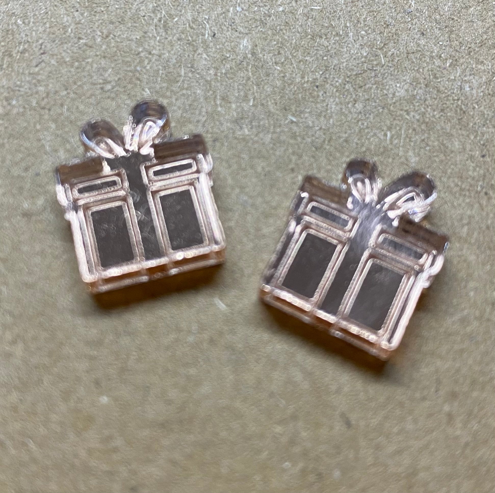 Pair of engraved Present with Bow stud blanks available in a range of mirror acrylics measuring approx 15mm x 12mm