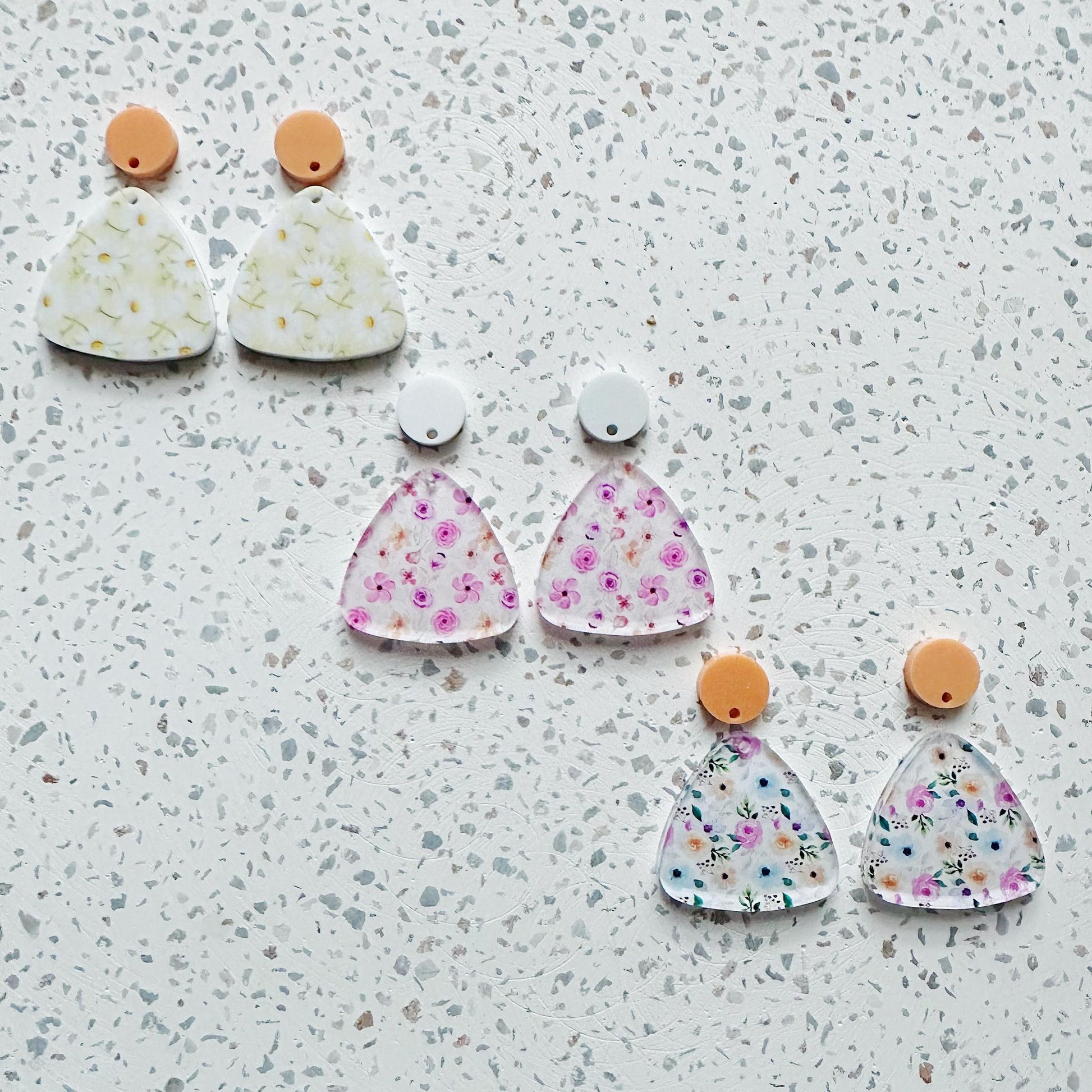 A pair of our popular Rounded Triangle Dangles available in a selection of prints come with holes ready for you to add earring toppers and/or hardware.