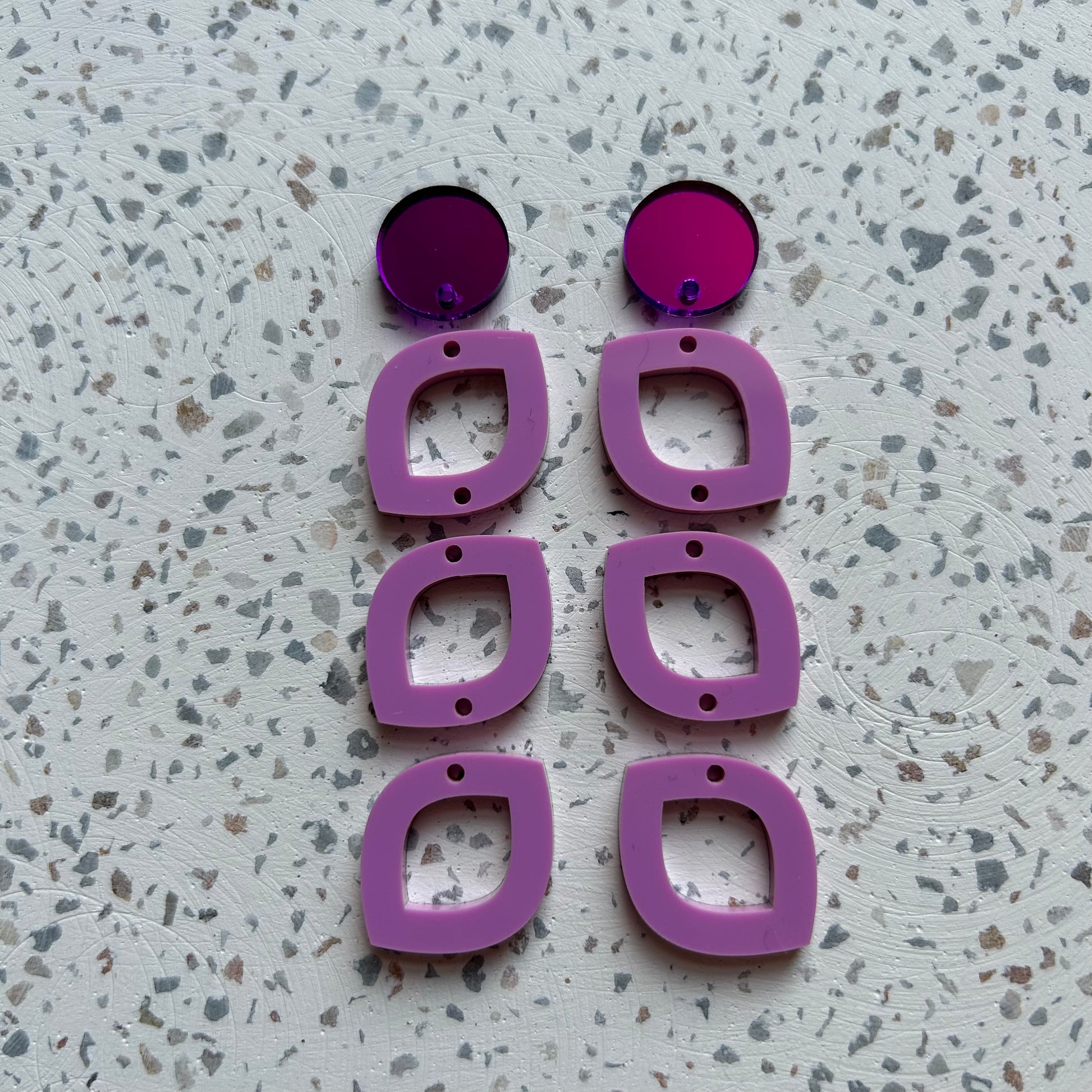 Pictured in Sour Grape Acrylic. Second picture shows them below Purple Mirror 12mm circle studs with hole available separately.