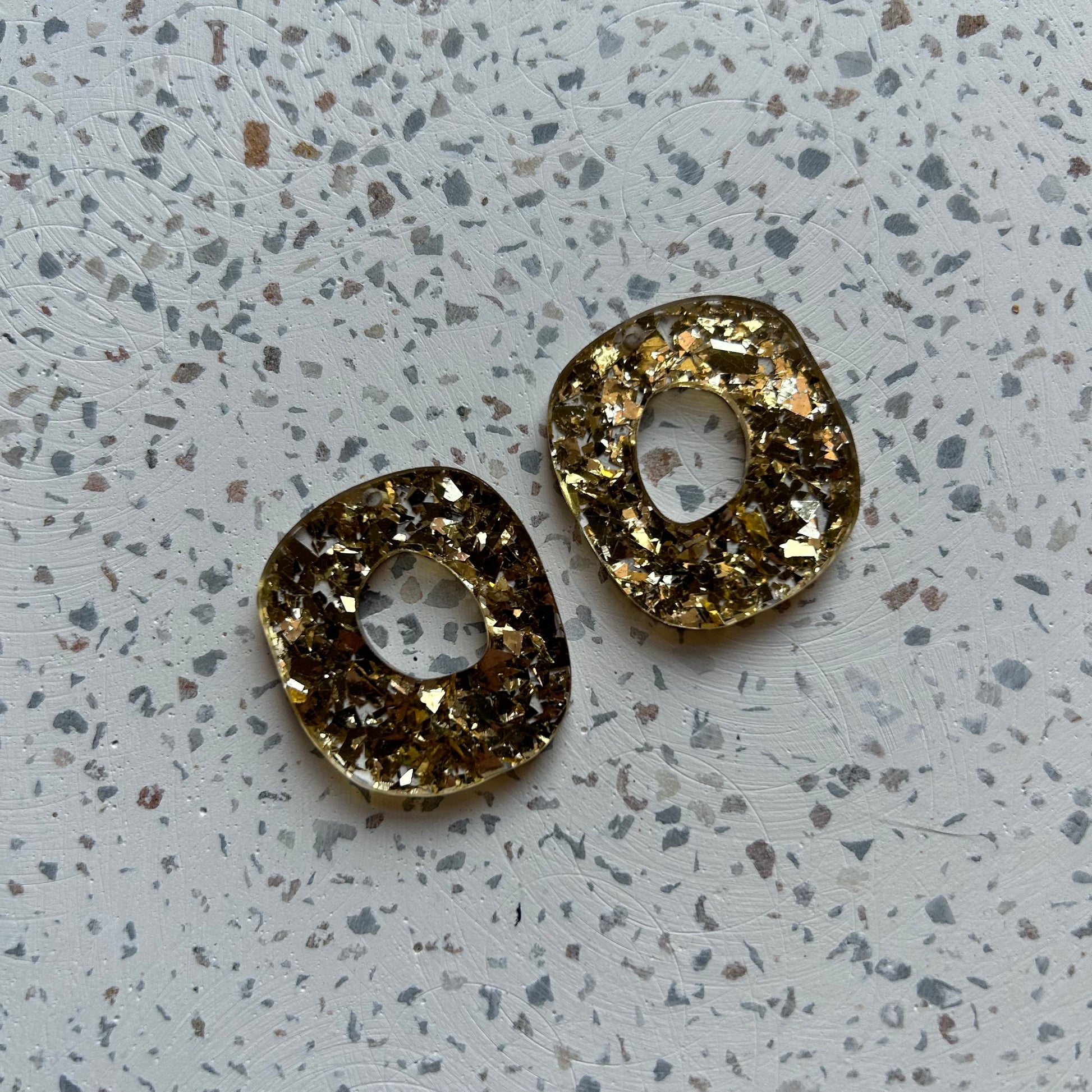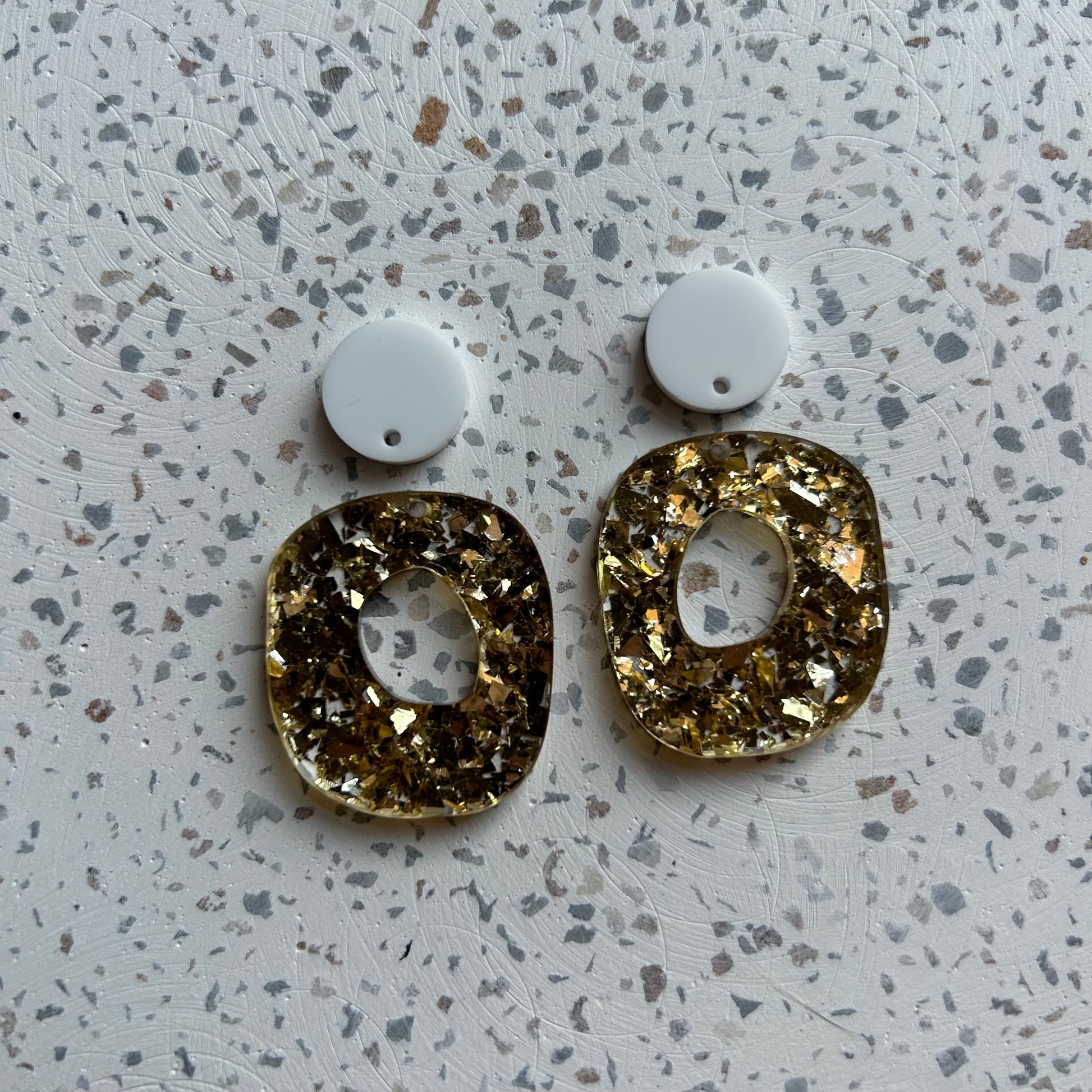 Pictured in Chunky Gold Glitter Acrylic Second picture shows them below 15mm White circle studs with hole available separately.