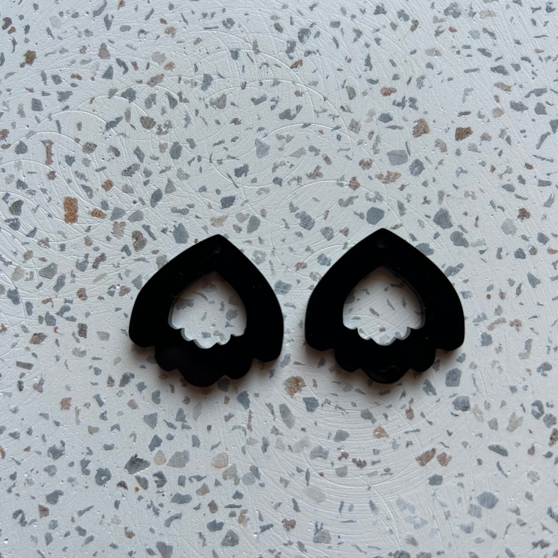 Pair of Scallop Shell Dangle Blanks measuring 30mm wide x 30mm high with a hole at the top. Available in a range of acrylics ready for you to add hardware and/or earring toppers.