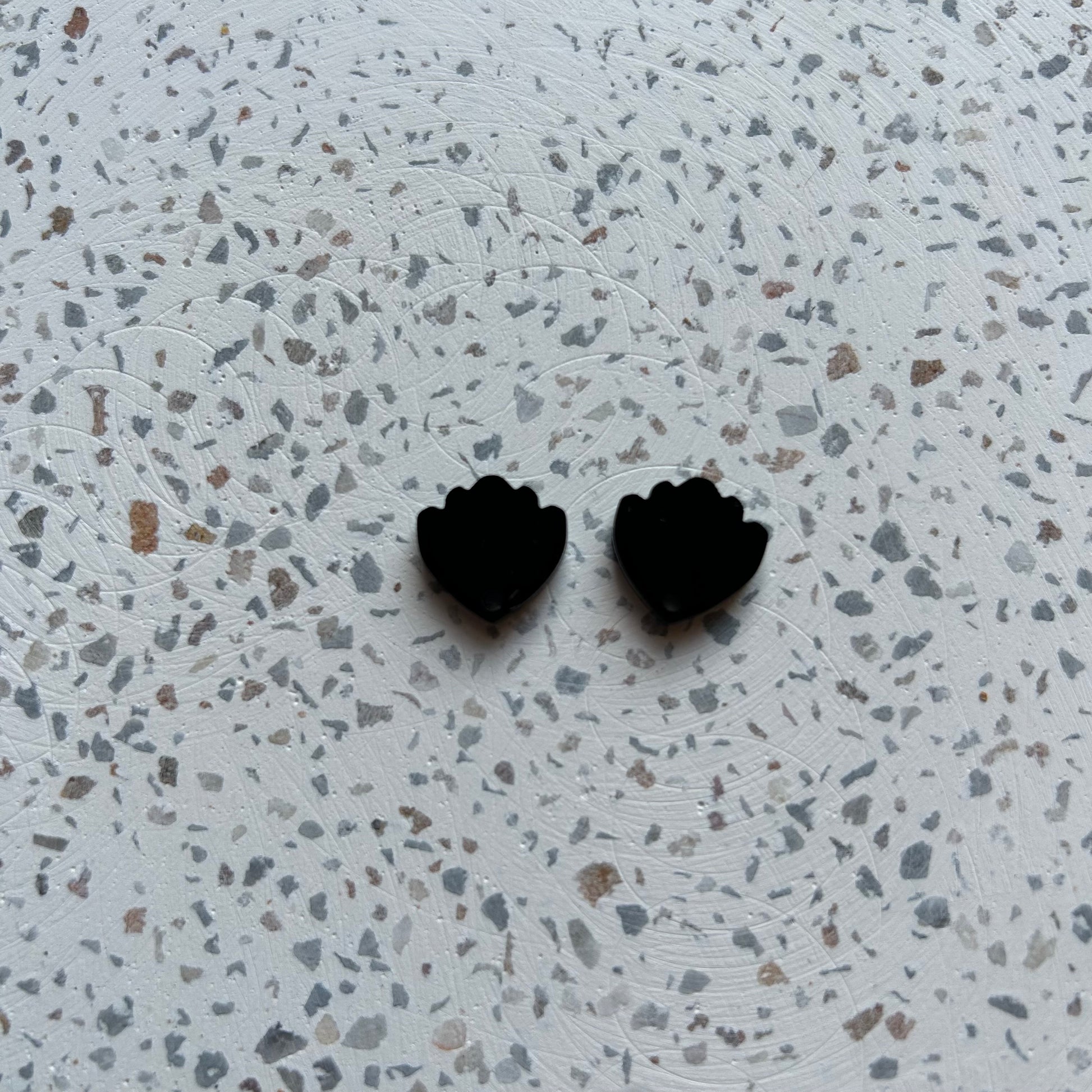 Pictured in Black Acrylic. Also shown with Rounded Triangle Dangles in Purple Glitter and Scallop Shell Dangles in Holographic Silver Glitter