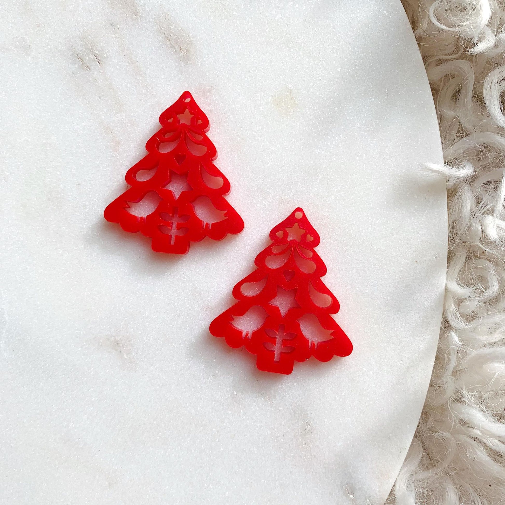 Pair of Scandi Fir Tree Silhouette Dangles available in a a range of plain acrylics to allow the intricate cut out details to shine.