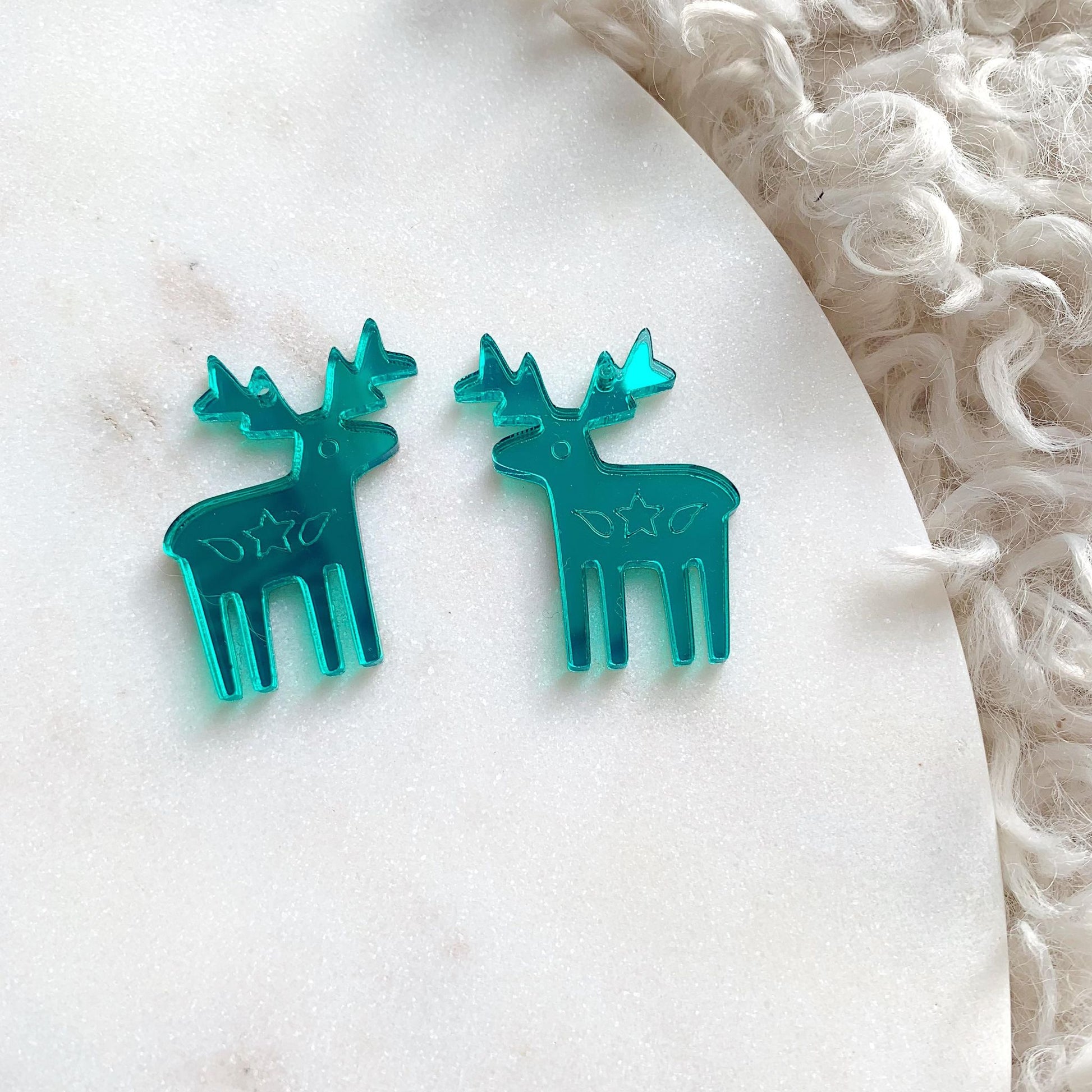 Measuring 31mm x 40mm these engraved mirror acrylic Reindeers Dangles come in a range of colours.