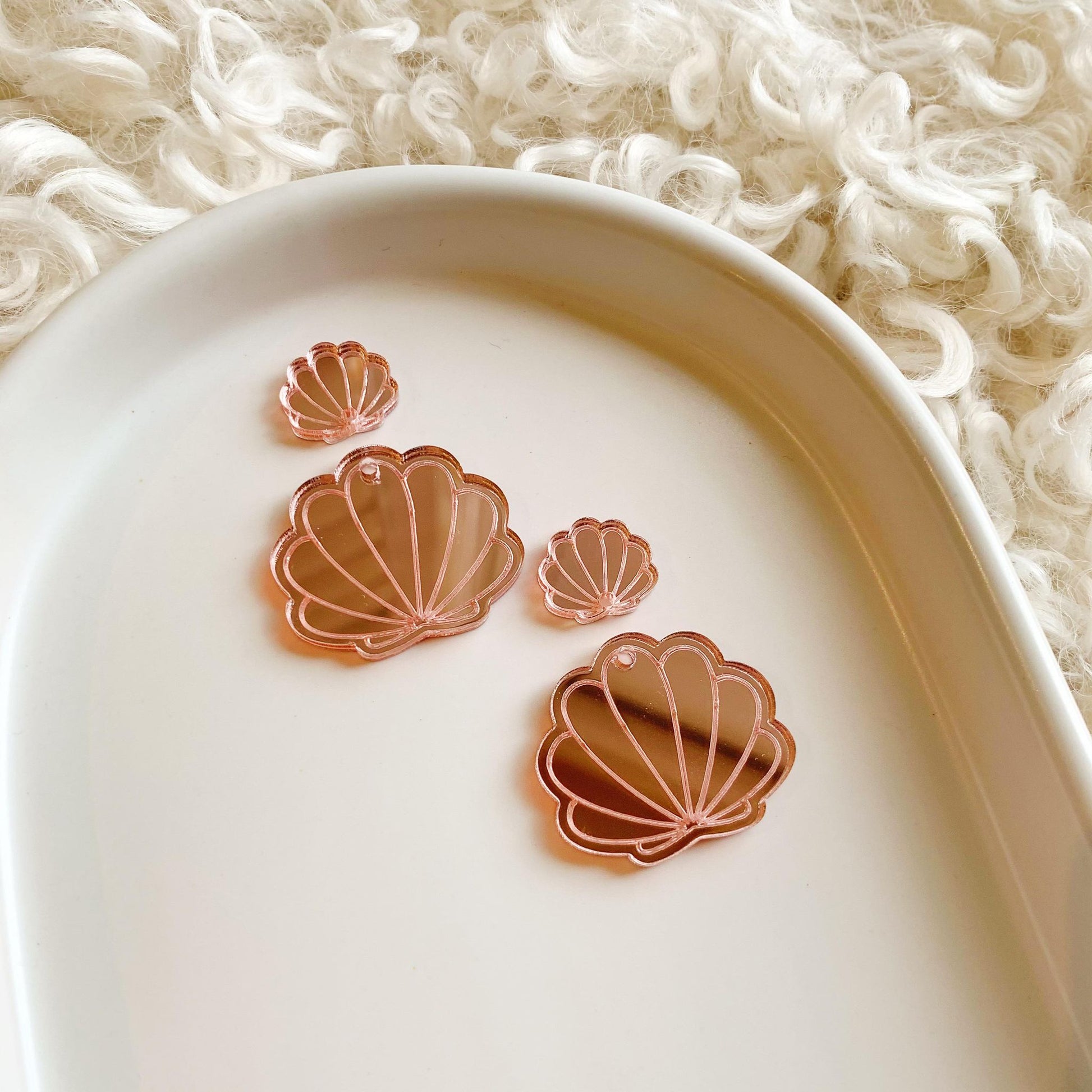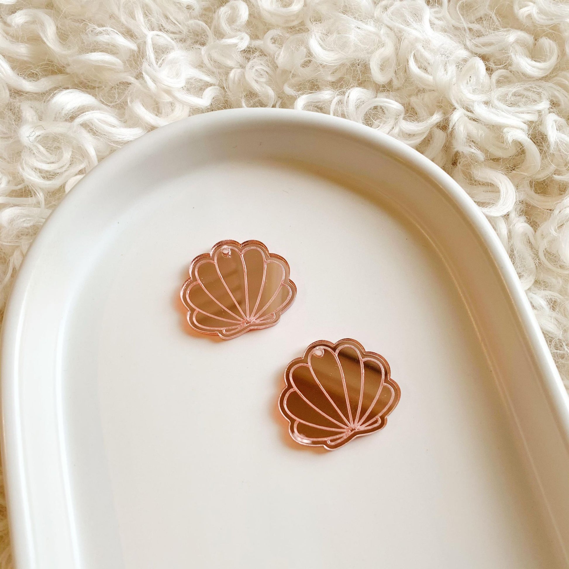Pair of 30 mm wide engraved acrylic mirror Seashell Earring Blanks.