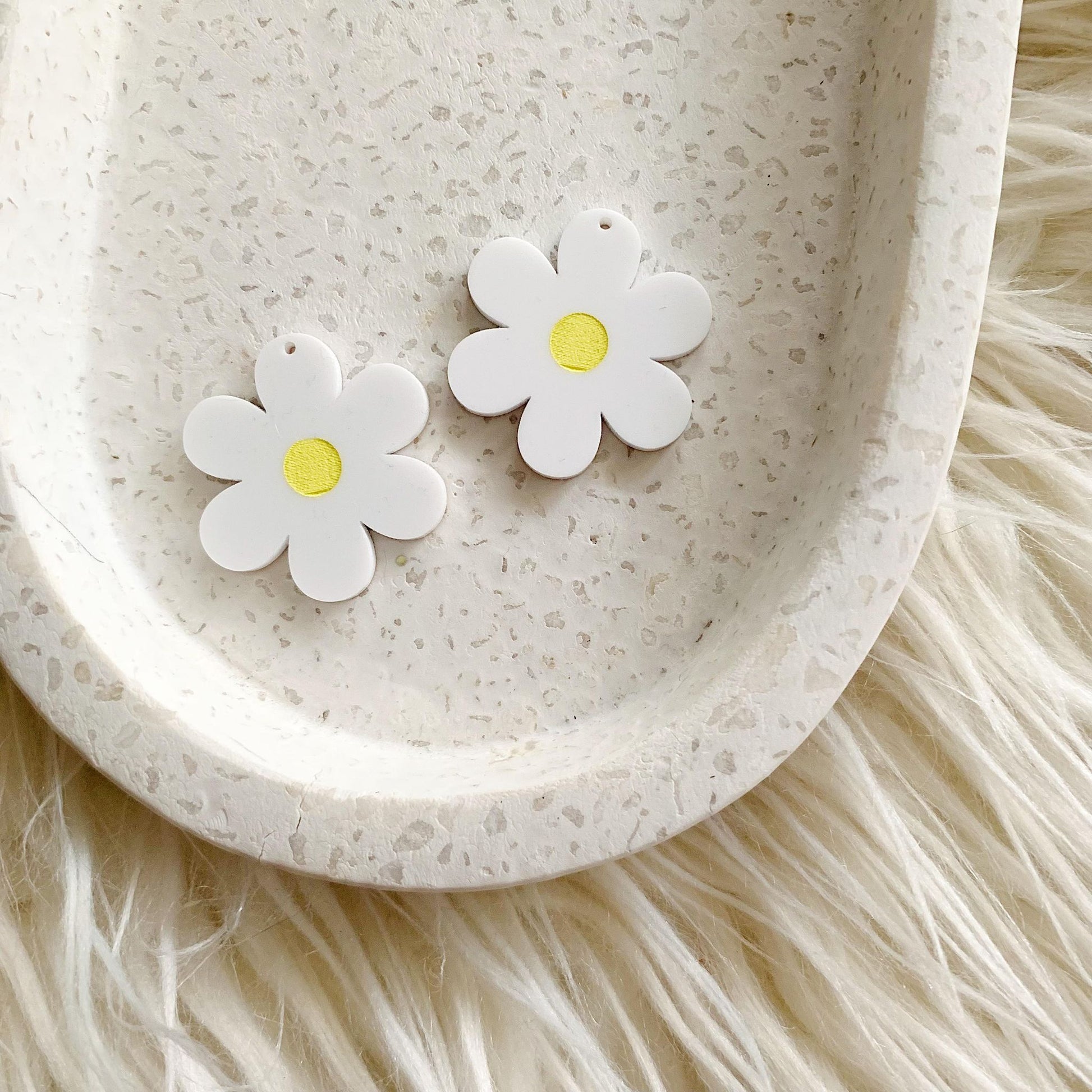 Pair of White Acrylic 30mm 6 Petal Daisy Dangles with 1.75mm hole to attach jump rings