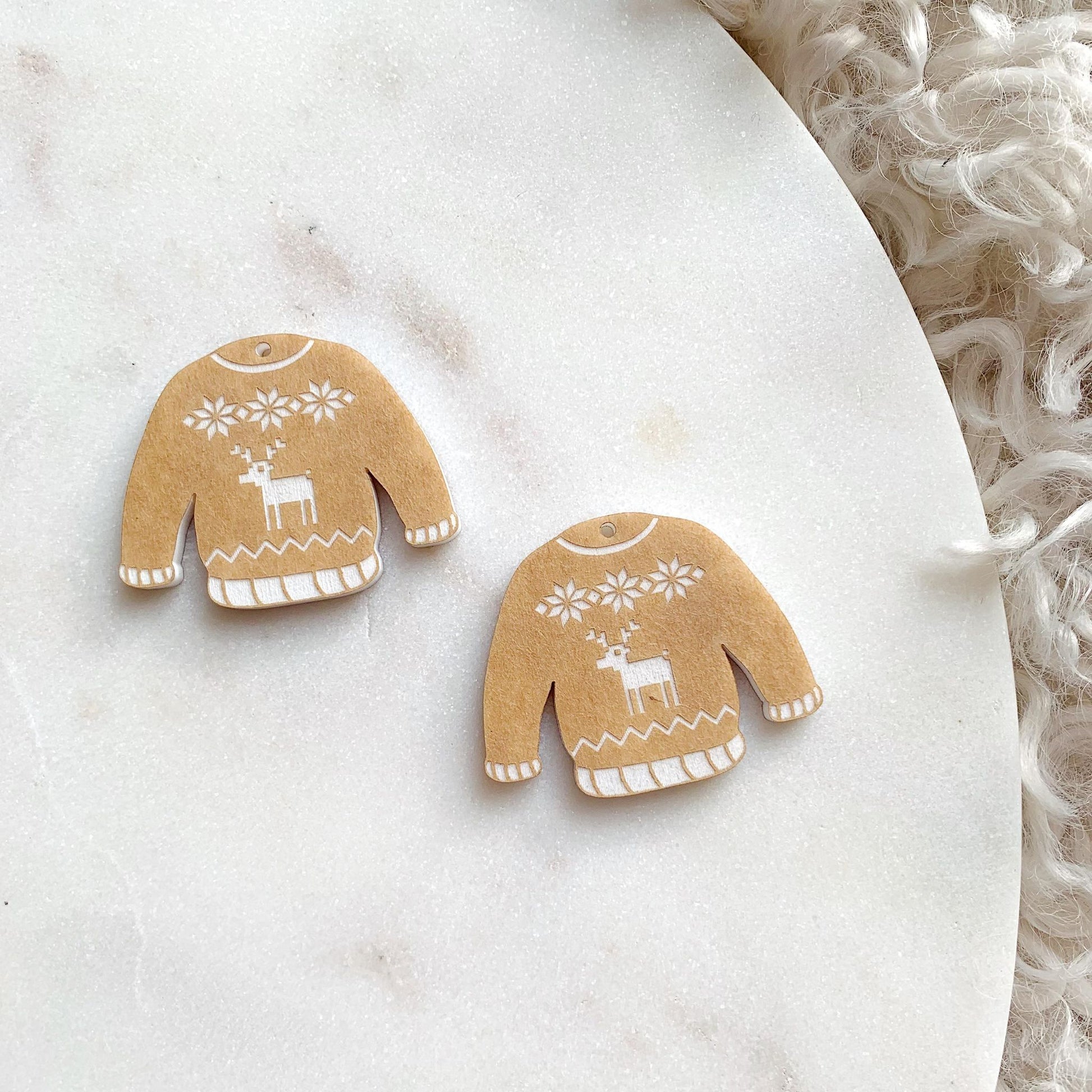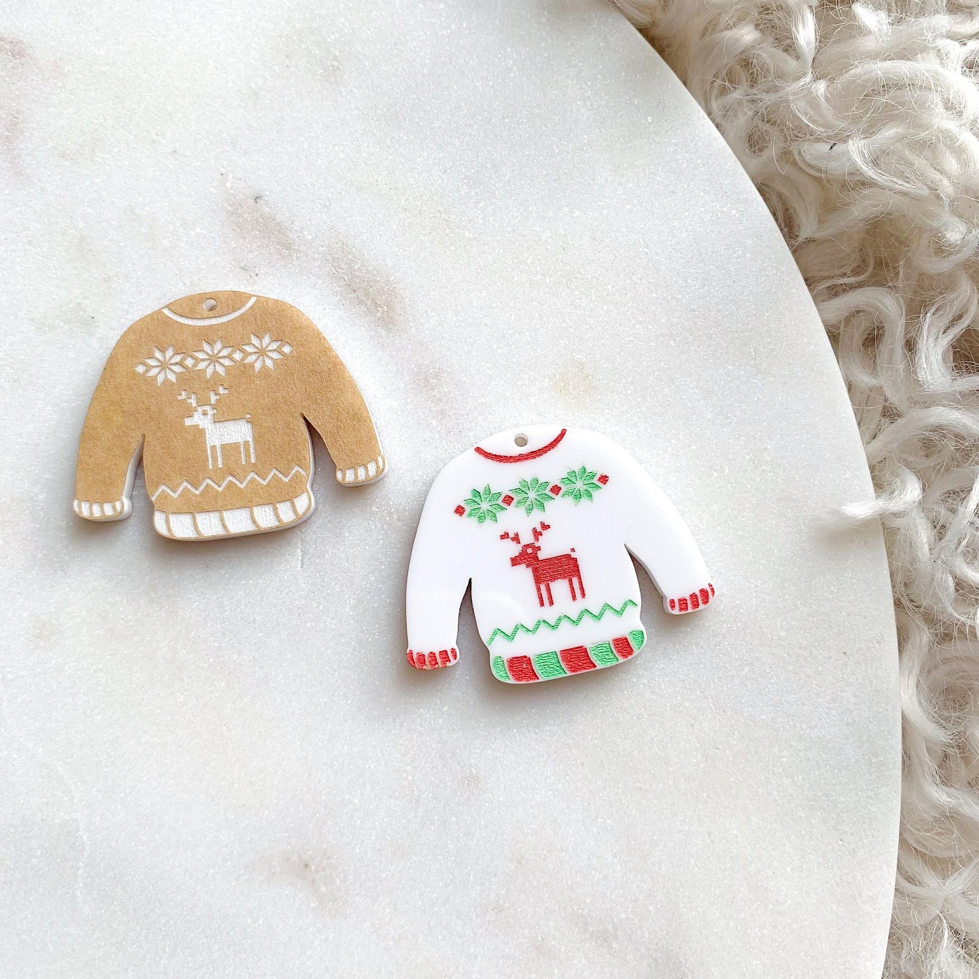 Pair of Ugly Sweater Dangles that will arrive to you engraved and masked ready for you to add your favourite Christmas colours.