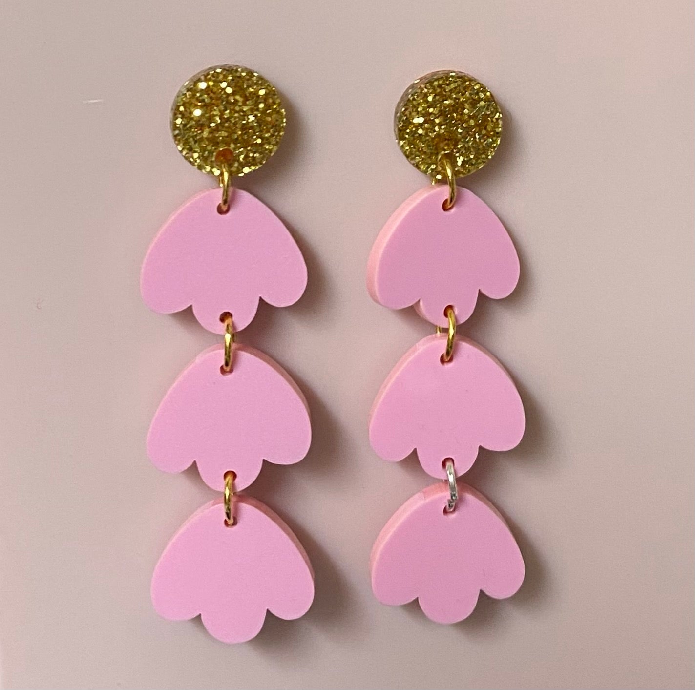 Also pictured in our Musk Pink Acrylic paired with Gold Glitter 12mm Circle Studs with Holes, connected with 6mm Jump Rings.