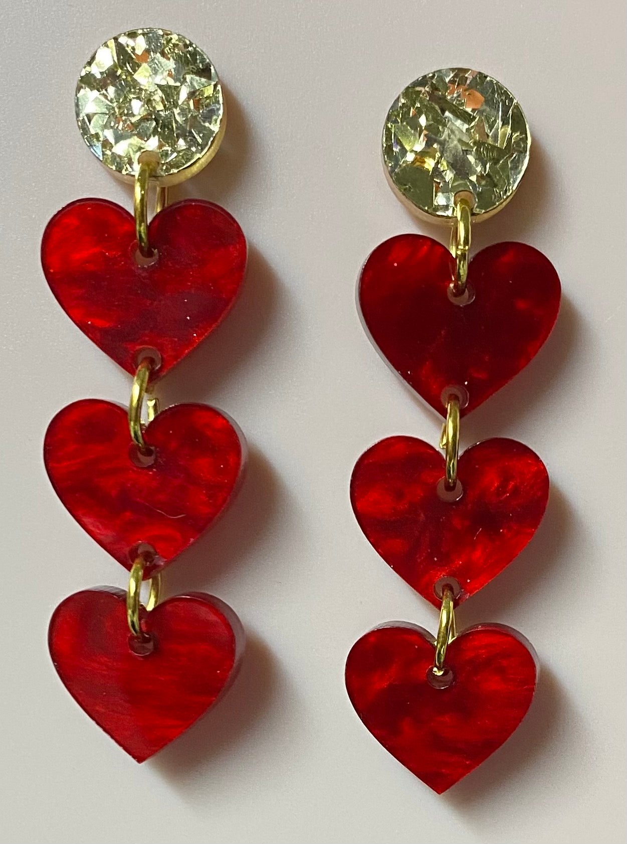 Also pictured in our Red Velvet Pearl Shimmer Acrylic paired with Chunky Gold Glitter 12mm Circle Studs with Holes, connected with 8mm Jump Rings.