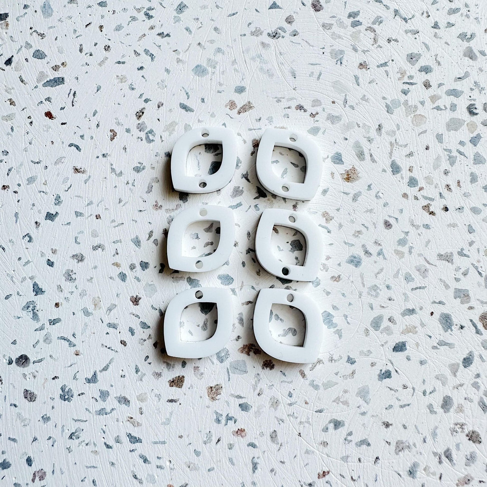 You will receive a set of 6 shapes with holes as pictured. Each piece measures 15mm wide and will be approx 47 mm in length when assembled as shown. Available in a range of acrylics ready for you to add hardware and/or earring toppers.
