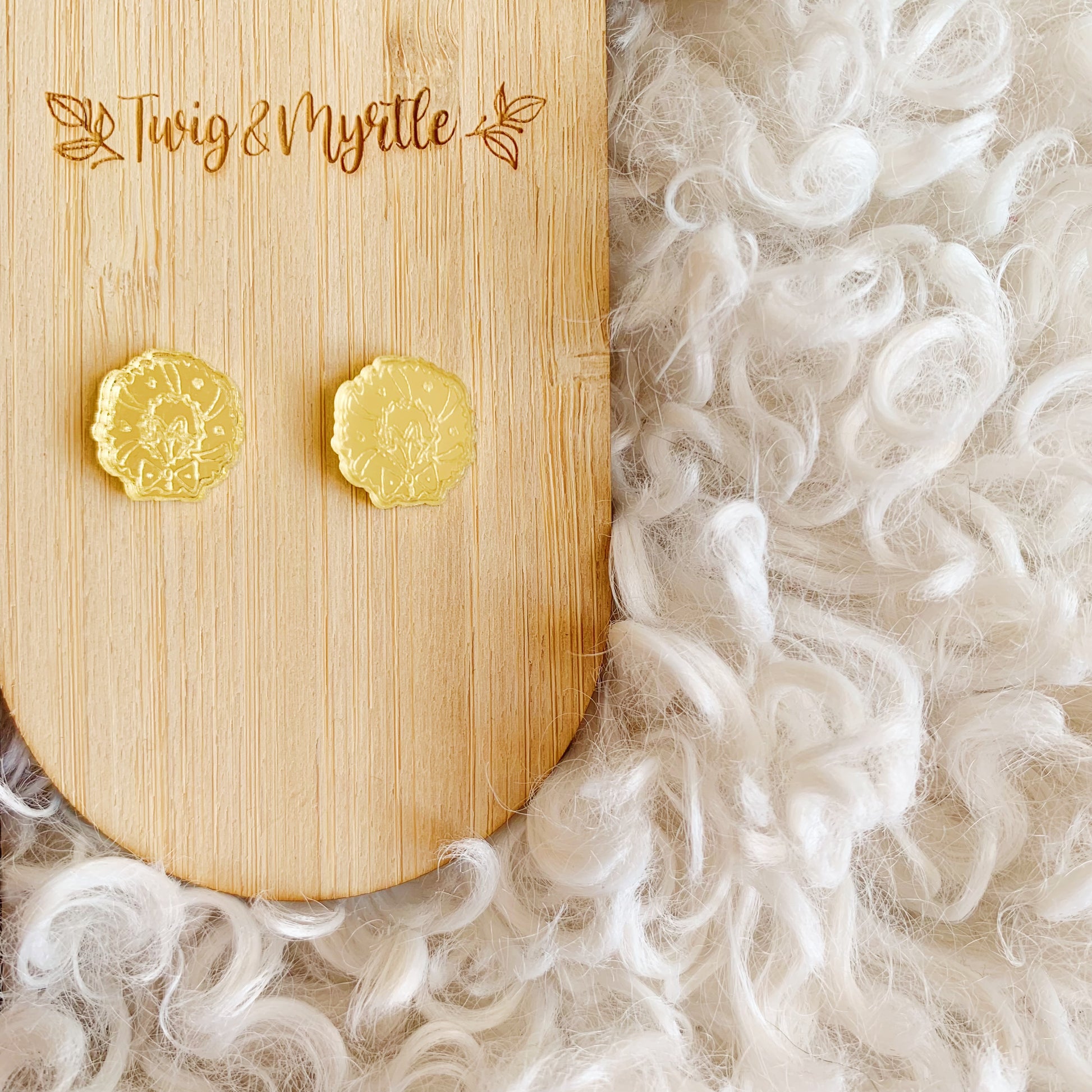 Pair of engraved Mirror Wreath stud blanks available in a range of mirror acrylics measuring approx 15mm